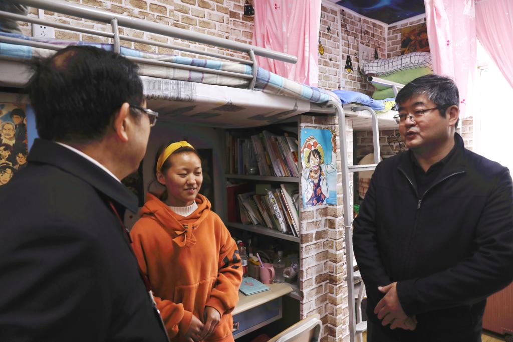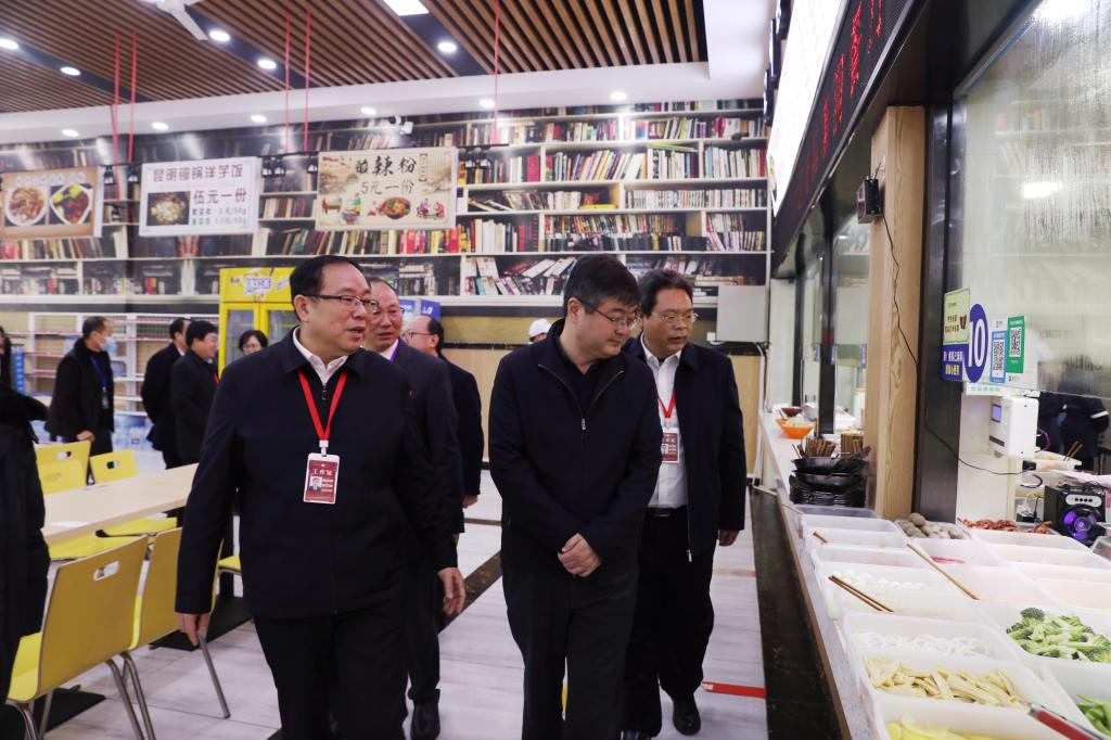 周进一行先后走访我校学生食堂、学生宿舍、监控中心、黔西北红色文化传承成果展示中心、化学工程学院实验实训中心,详细检查了解了校园食品安全、管理规范、学生心理健康状况、实验药品安全等工作情况。