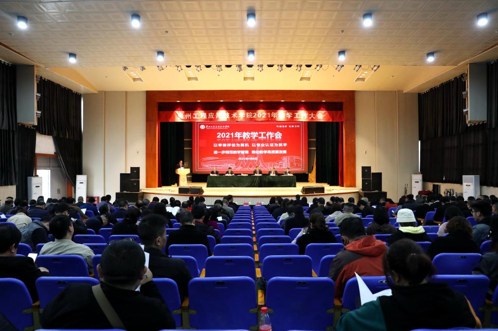 为深入学习贯彻习近平新时代中国特色社会主义思想和党的十九届二中、三中、四中、五中全会精神,全面落实全国、全省教育大会以及中国共产党贵州工程应用技术学院第二次代表大会精神,奋力开启学校“十四五”本科教育教学工作新征程,4月8日下午,我校在正心礼堂召开“以审核评估为契机 以专业认证为抓手 进一步规范教学管理 推动教学高质量发展”为主题的2021年教学工作大会,校党委书记令狐荣锋,党委副书记、校长王建平,党委副书记汤宇华、向贤礼,党委委员、副校长李琳、杨友昌出席大会,全体处级干部、教务处、督导团全体成员、各学院专业负责人、辅导员、获表彰人员、师生代表350余人参加,会议由汤宇华主持。