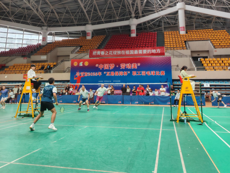 为贯彻落实《体育强国建设纲要》和《全民健身计划(2021—2025年)》,进一步推进全民健身与全民健康深度融合,广泛深入开展全民健身运动,提高全市人民群众身体素质和健康水平,丰富职工业余文化生活,给广大职工提供一个切磋球技、相互交流,增进友谊,加强情感交流的平台。同时,进一步提高职工互助保障活动的社会影响力与知晓率。毕节市总工会、 毕节市体育局于2025年9月19-21日期间,在我校绣山体育馆隆重举行“中国梦·劳动美”毕节市2025年“互助保障杯”职工羽毛球比赛。各县(市、区)总工会(工会工作委员会)、市直各基层工会积极组队参加了比赛,我校工会代表队荣获优秀组织奖。
