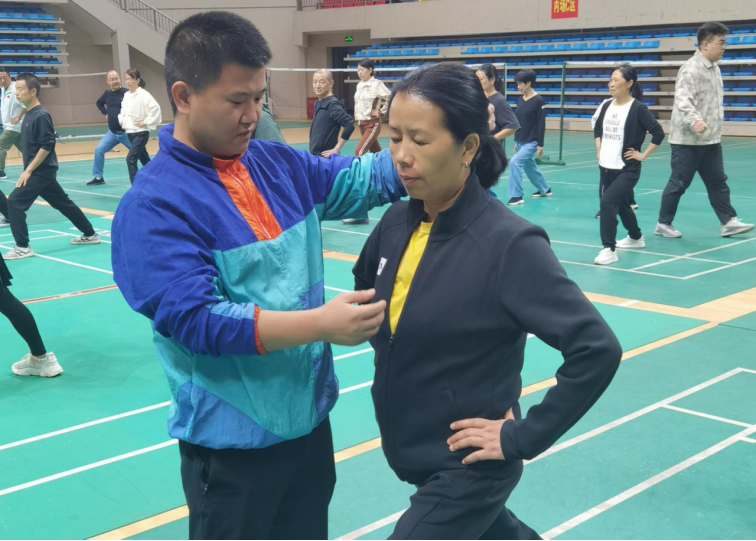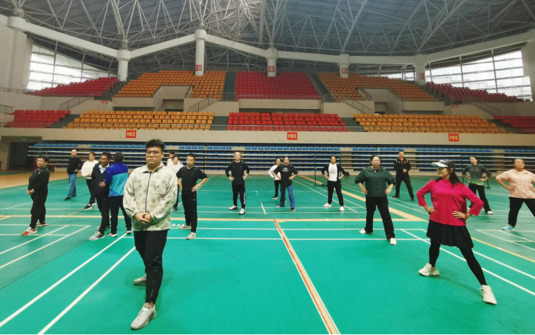 开营现场,教职工们迅速进入状态。太极拳协会负责人伍西安老师从太极拳呼吸调节和基础桩功等模块入手,耐心讲解动作要领与发力技巧,针对不规范之处逐一指导纠正。体育馆内,教师们认真跟随练习,从生疏摸索到逐渐熟练,每一个动作都展现出专注与毅力,训练间隙的交流探讨更让现场氛围既热烈又温馨,充分体现了教职工团队积极向上的精神风貌。