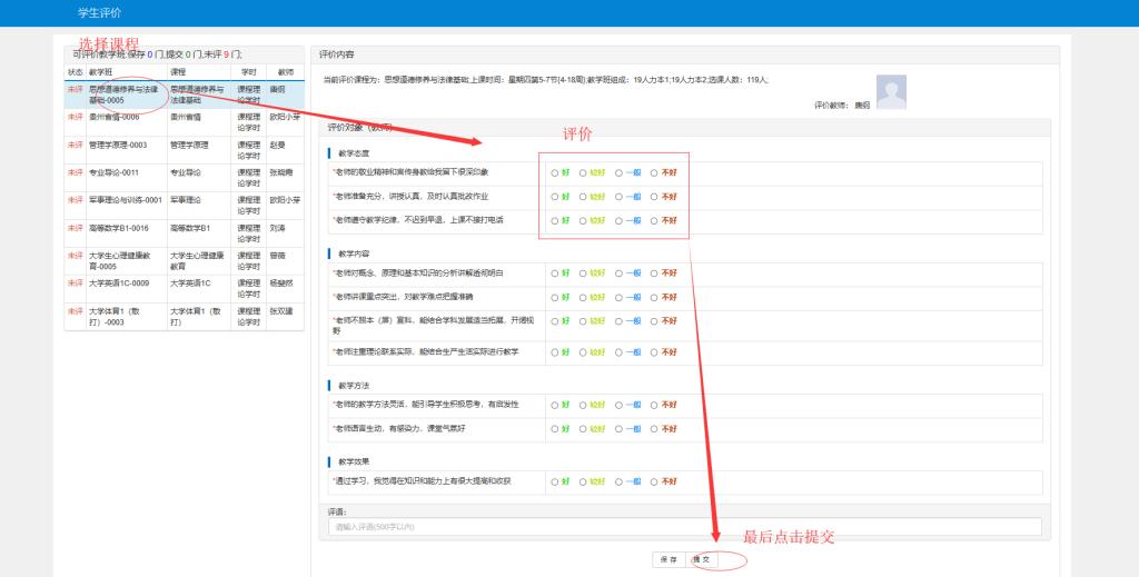 2.学生只有完成对所学全部课程网上评教后,方能进行下学期网上选课操作和查询成绩。