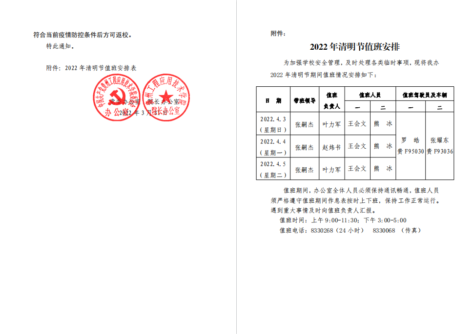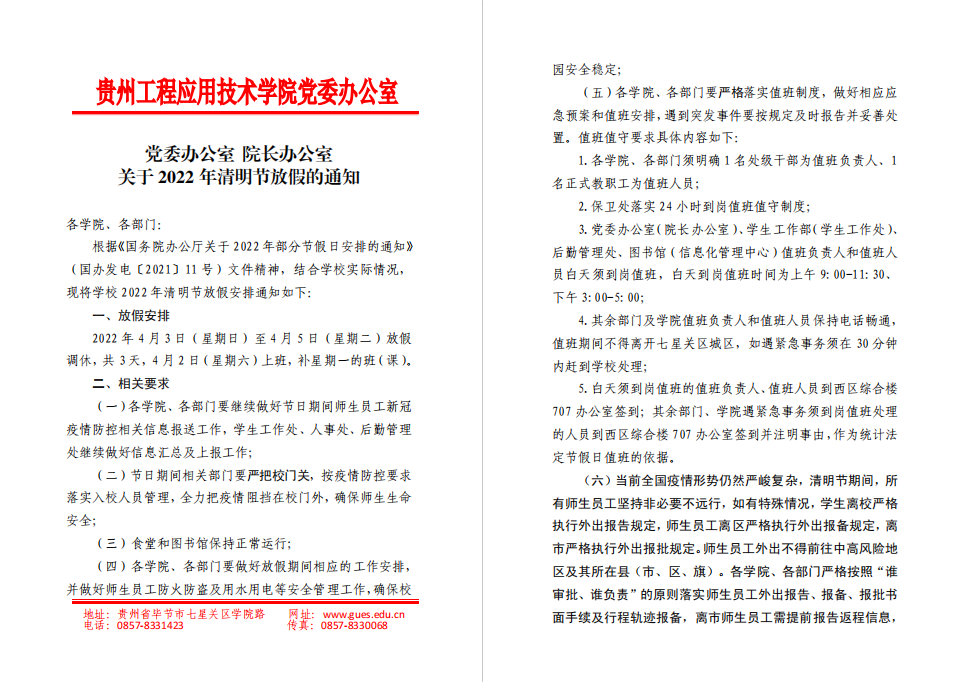 贵州工程应用技术学院关于2022年清明节放假的通知