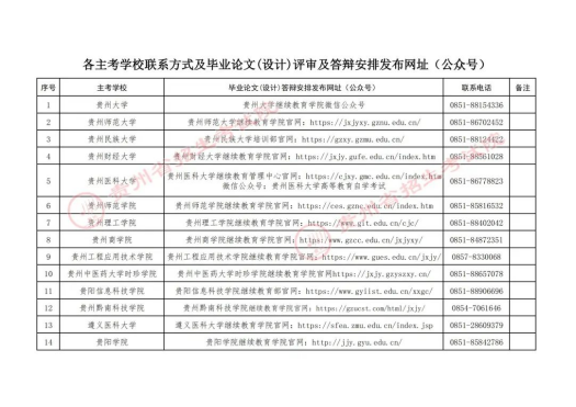 1.各主考学校联系方式及毕业论文(设计)评审及答辩安排发布网址(公众号)