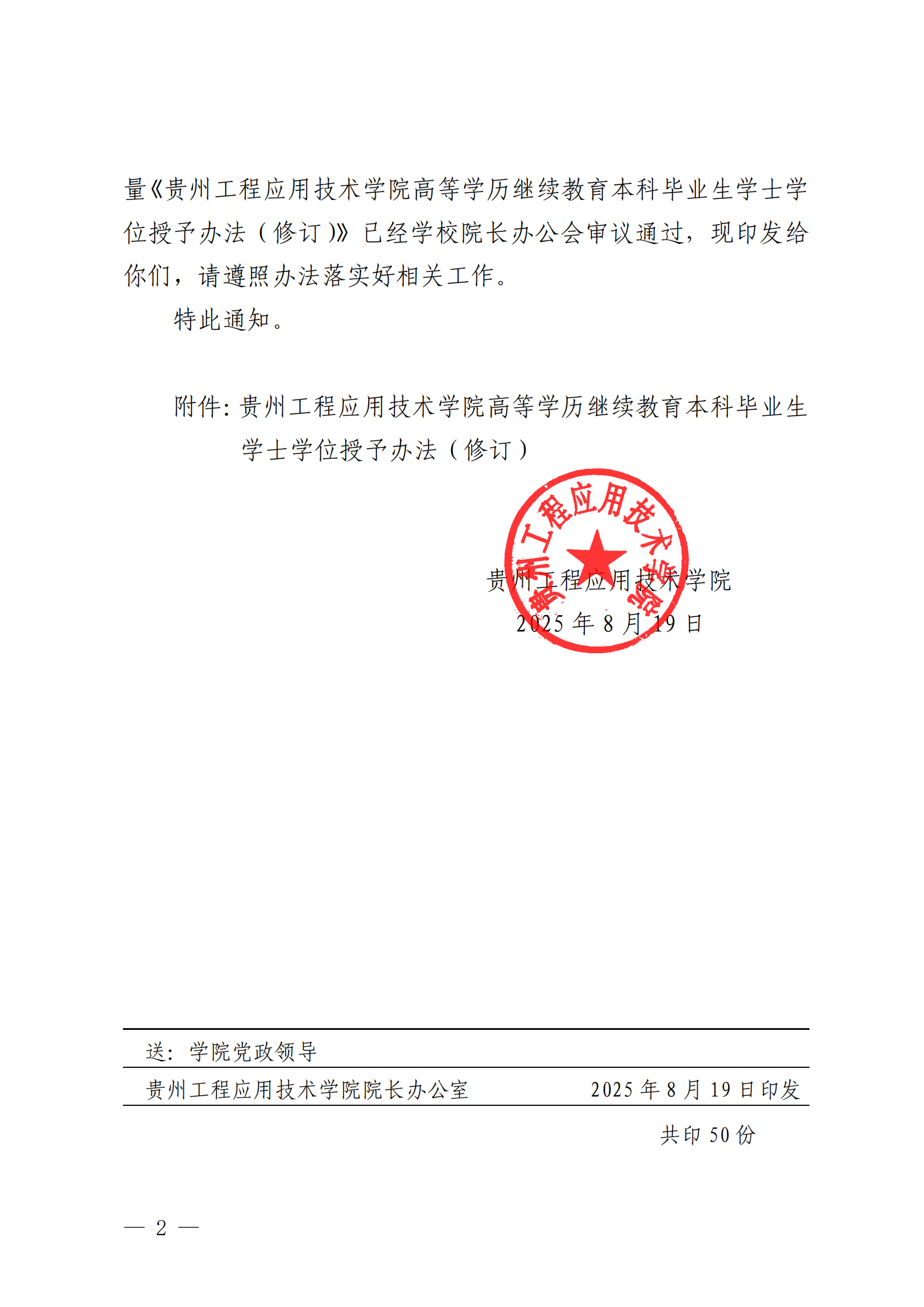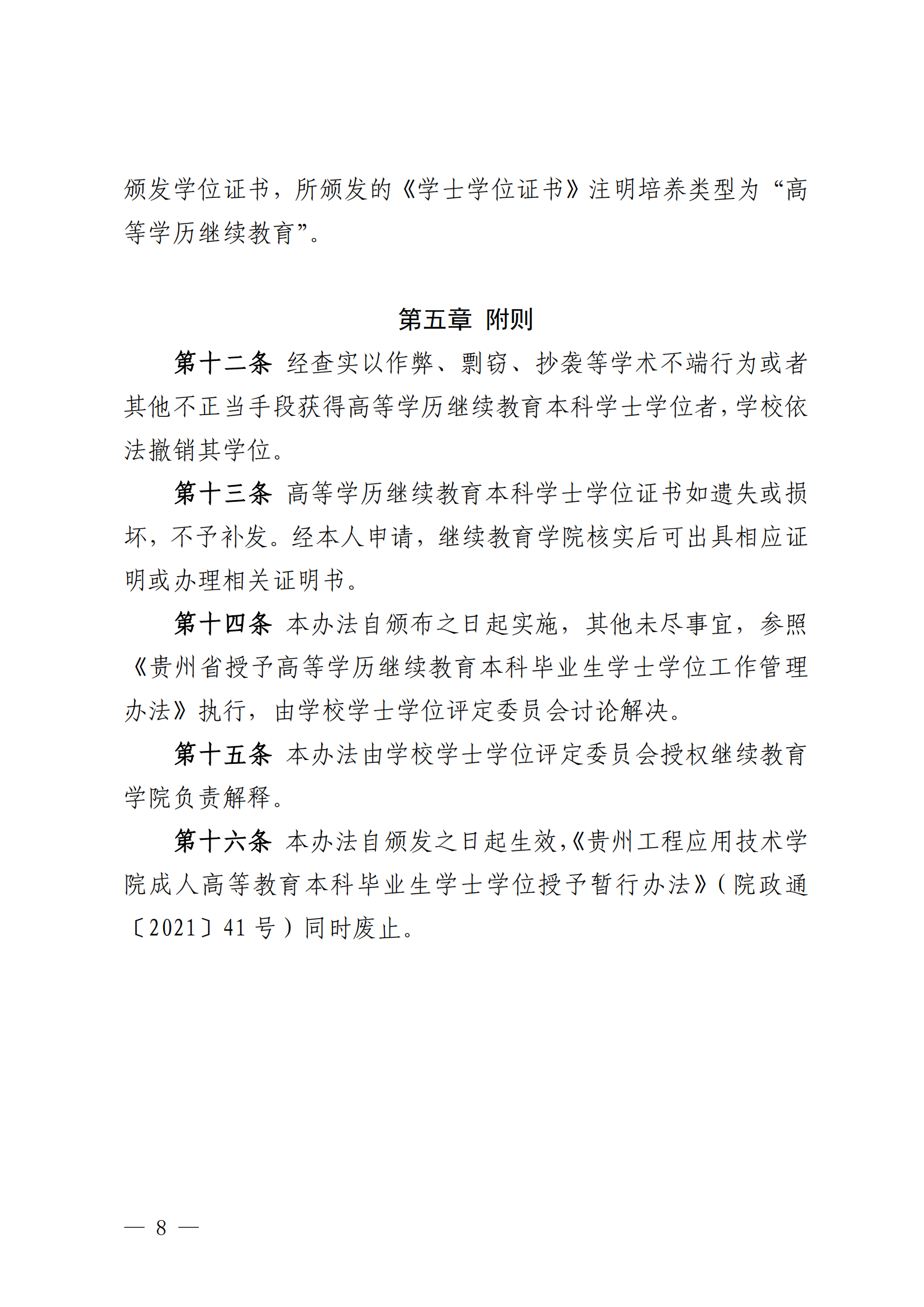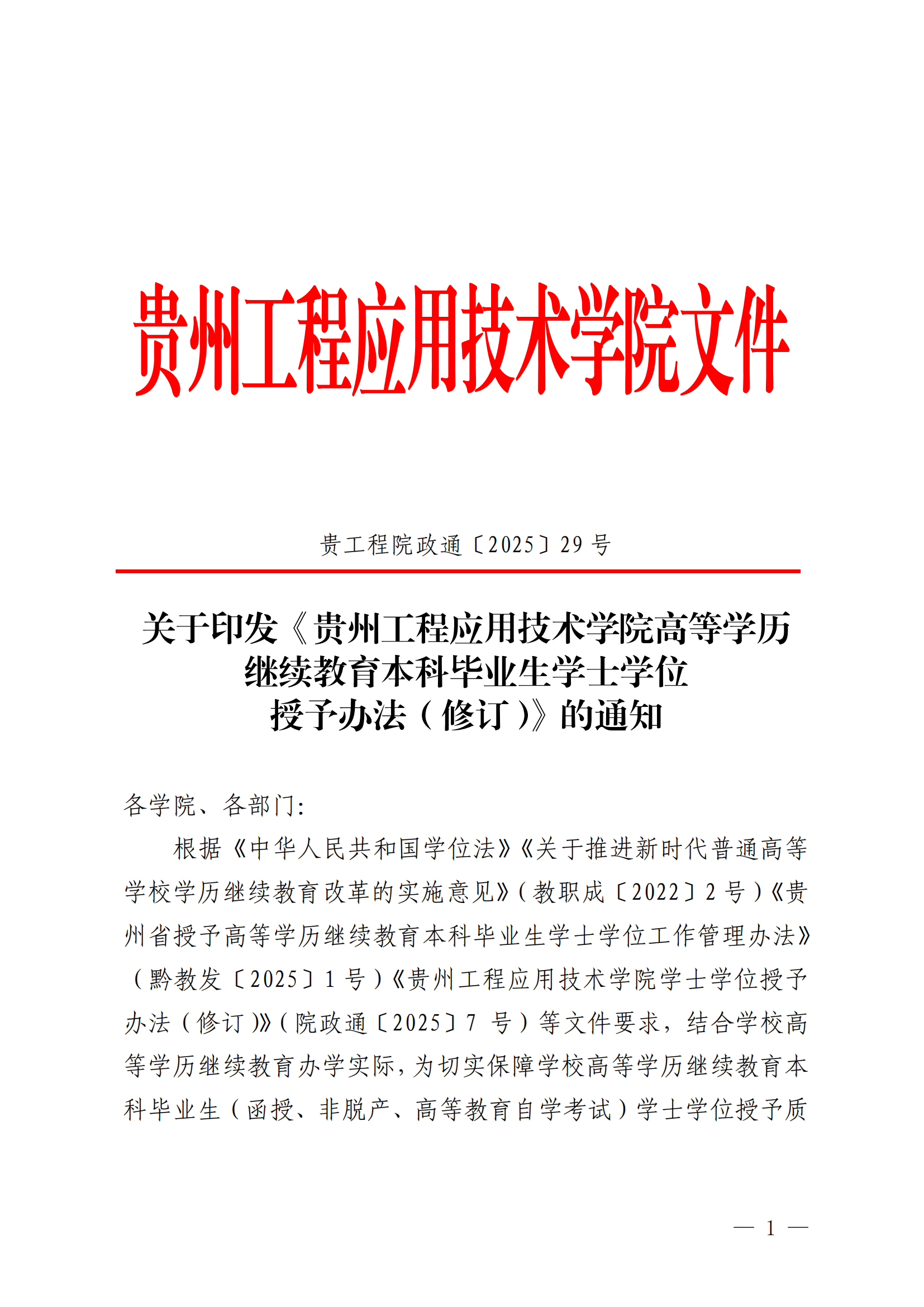 【转发】关于印发《贵州工程应用技术学院高等学历继续教育本科毕业生学士学位授予办法(修订)》的通知