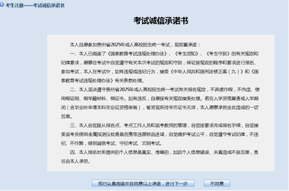 图2.4 考生诚信考试承诺书页面