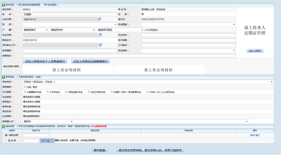 提交数据:提交报名信息到报名点审核,系统会检查数据的逻辑性,如果问题,会提示考生修改。数据提交审核以后,信息将不能修改。
