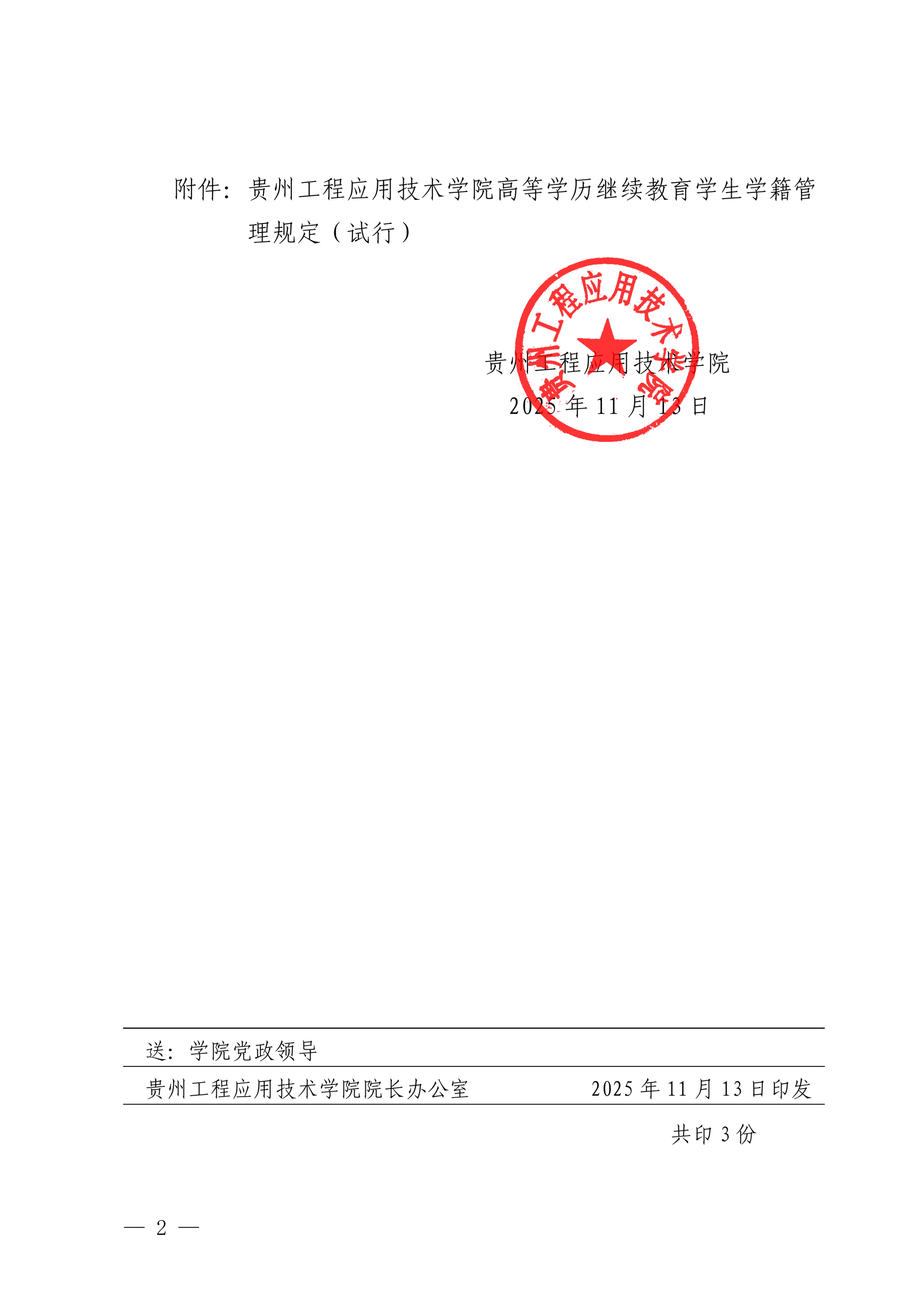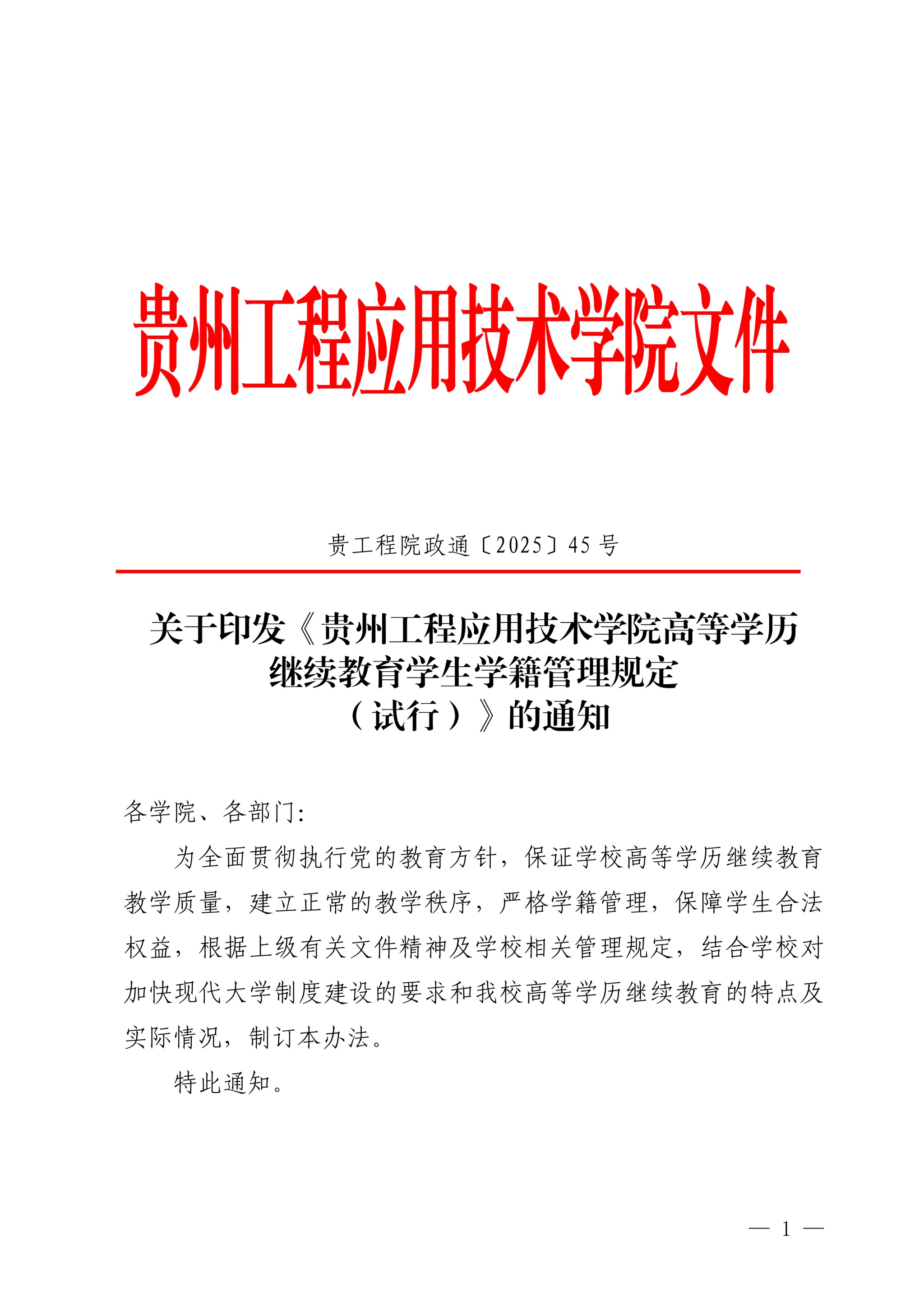【转发】关于印发《贵州工程应用技术学院高等学历继续教育学生学籍管理规定(试行)》的通知