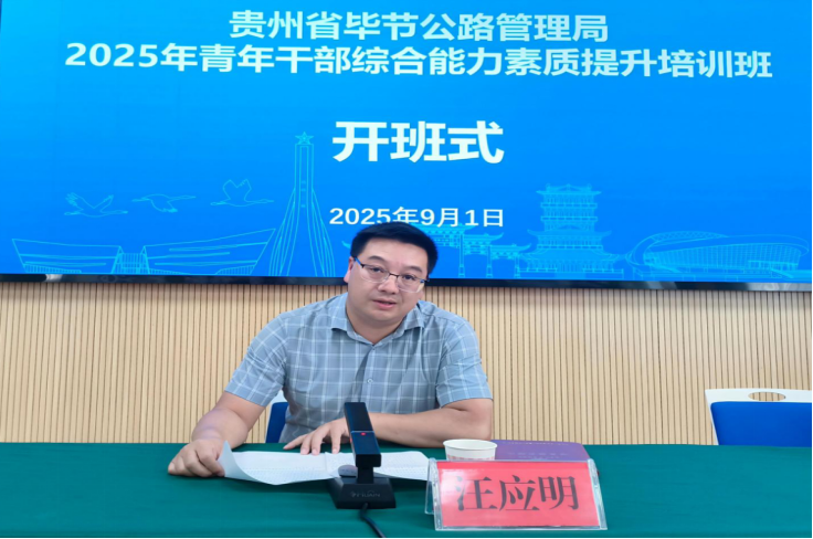 为深入贯彻落实习近平总书记关于青年工作的重要论述和做好新时代人才工作的重要指示,进一步做好毕节公路新时代“三类干部”的培养工作,锻造一支素质过硬、能力过硬、作风过硬的青年干部队伍。由贵州省毕节公路管理局主办、贵州工程应用技术学院继续教育学院承办的“贵州省毕节公路管理局2025年青年干部综合能力素质提升培训班 ”于2025年9月1日在贵州工程应用技术学院仲群楼二楼会议室正式开班。毕节公路管理局党委委员工会主席汪应明、贵州工程应用技术学院继续教育学院院长王竹娟、相关工作人员及40名参训学员参加了开班仪式。