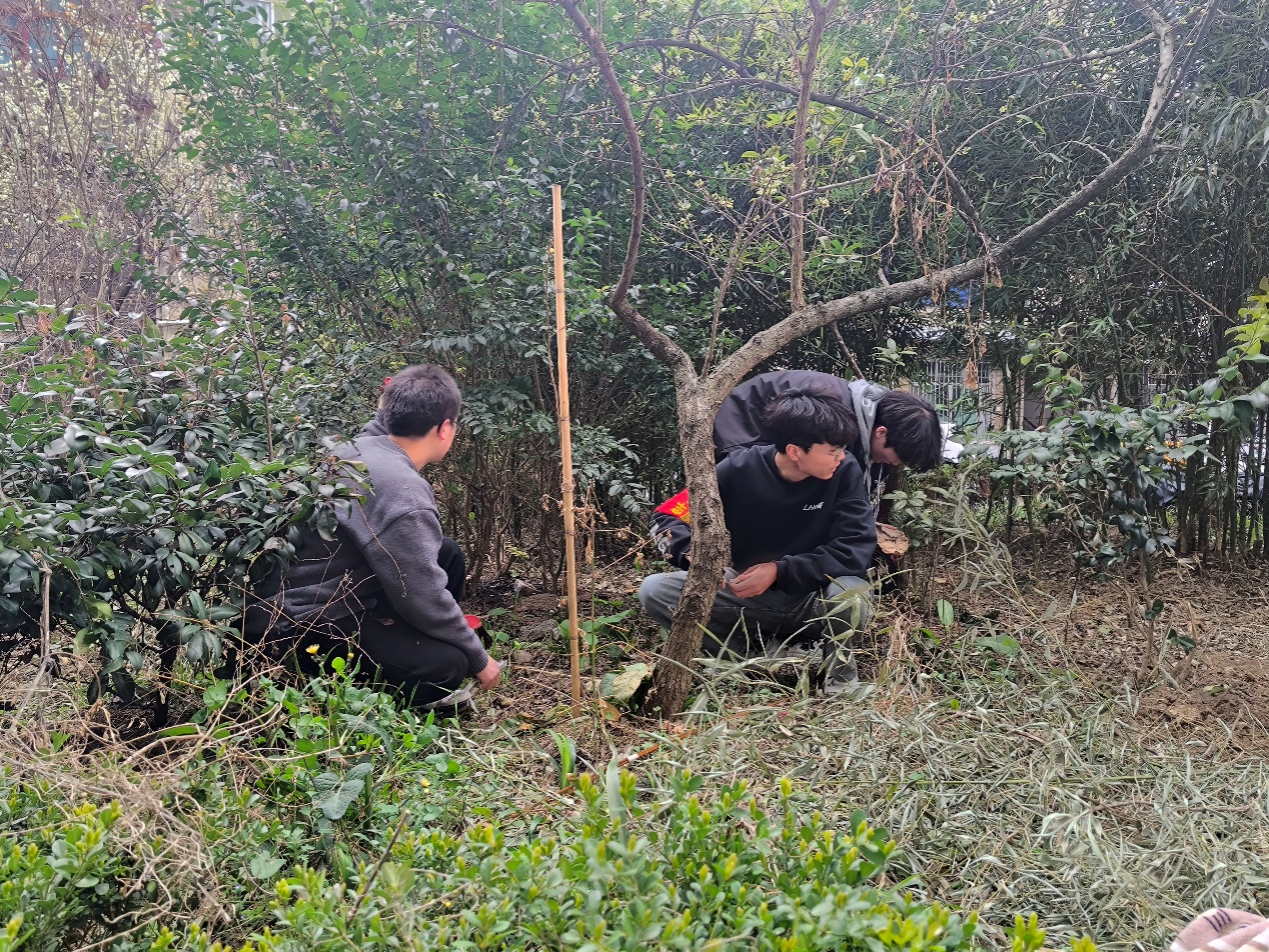(图为我院志愿者清理花坛垃圾)