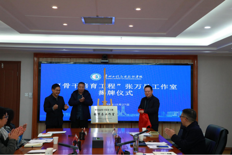 为助力毕节市科技骨干人才培养,10月27日上午,毕节市“骨干培育工程”张万昌工作室揭牌仪式在我校西区综合楼702会议室举行。中国科学院空天信息创新研究院张万昌教授,市科技局党组书记、局长刘利,学校副校长王毓等领导出席仪式并座谈交流,仪式由科研处处长陈群利主持。