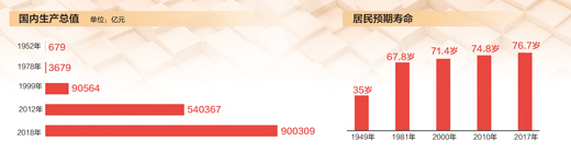70年,我们创造了经济发展的伟大奇迹。中国经济发展的伟大奇迹,植根于新中国前30年艰苦卓绝的探索,得益于改革开放的伟大历史抉择。新中国成立后,我们在不长的时间里建立起独立的比较完整的工业体系和国民经济体系。改革开放后,对内改革、对外开放的全面展开,充分释放了中国经济的活力,创造了人类经济发展史上罕见的中国速度。2018年,我国国内生产总值为900309亿元,经济总量首次站上90万亿元的历史新台阶,稳居世界第二位。在推动经济发展的过程中,我们也经历了1997年亚洲金融危机、2008年国际金融危机等的严重冲击,但中国经济经受住了严峻考验,表现出极强的韧性。
