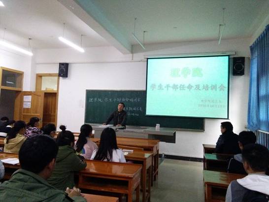 为提高理学院学生干部的政治素养和工作能力,进一步发挥学生干部的先锋模范带头作用,促进理学院学生工作的有力开展。理学院于2016年10月14号下午4点30分在理学院202教室举行了学生干部任命及培训会。