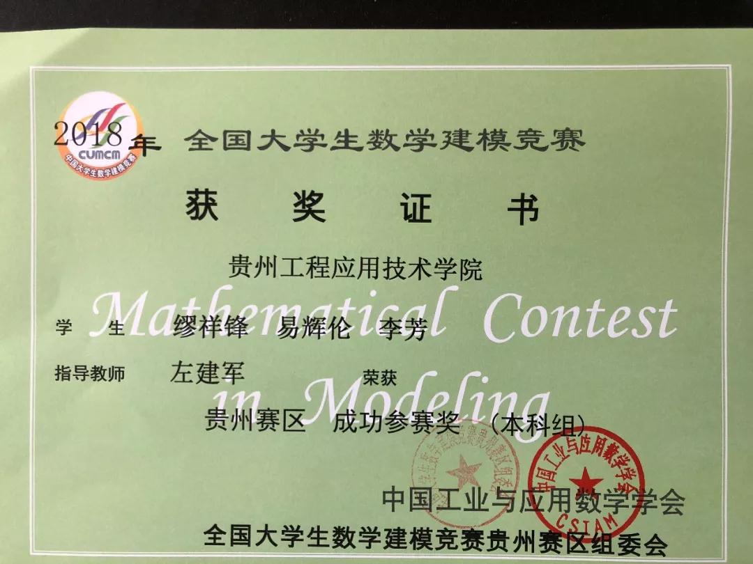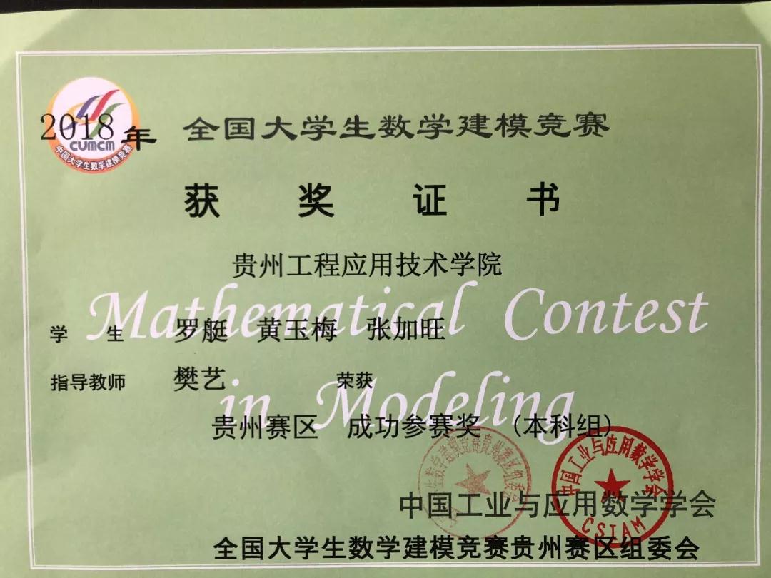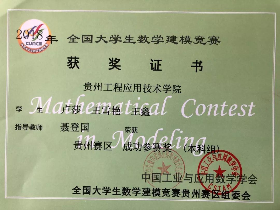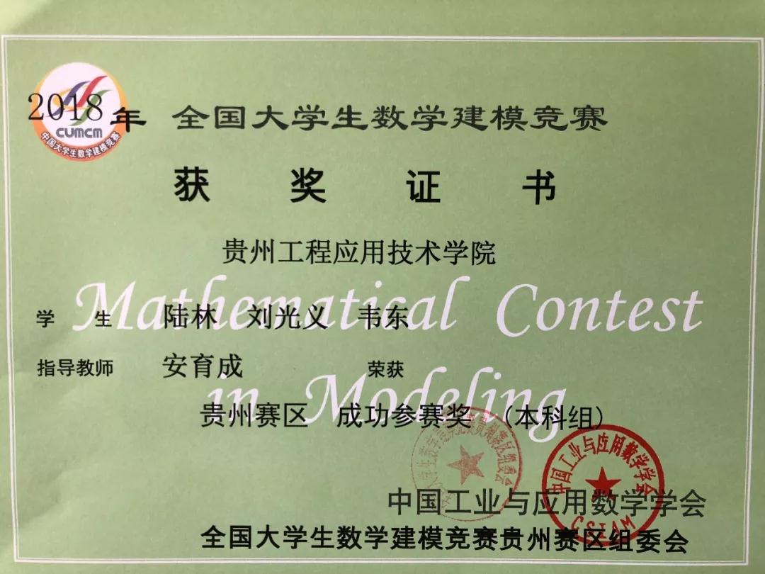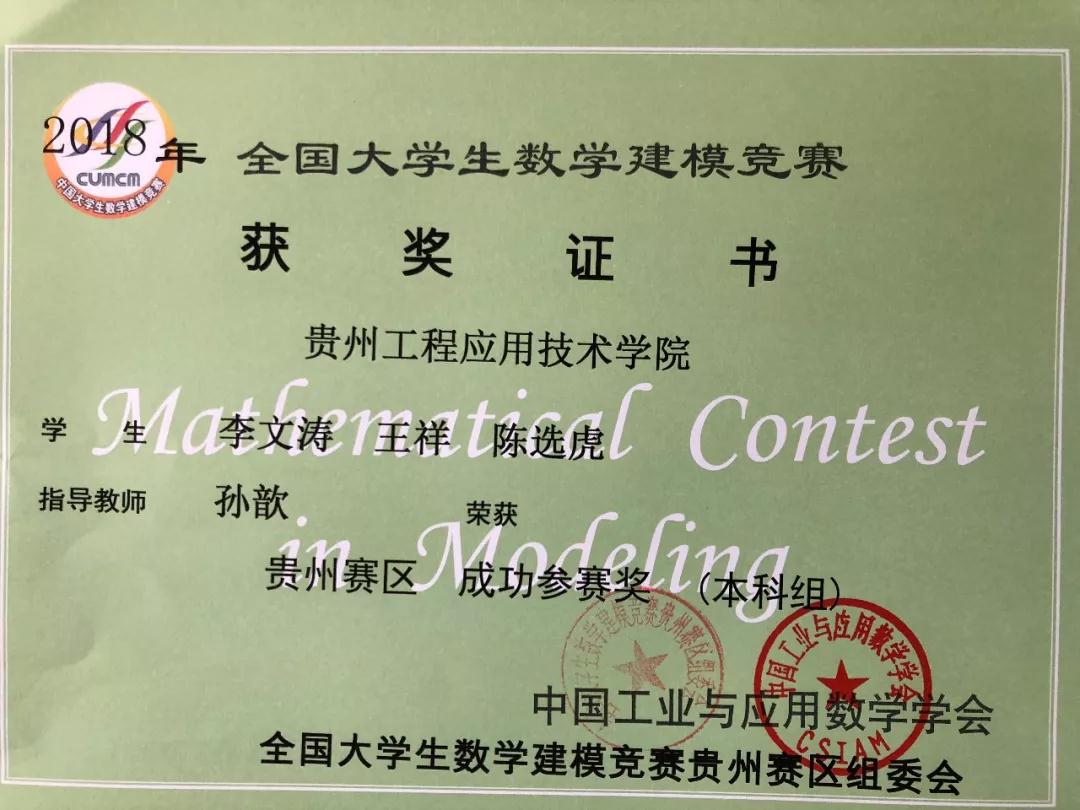 光荣榜|我院2018年全国大学生数学建模大赛获奖者名单(附证书)