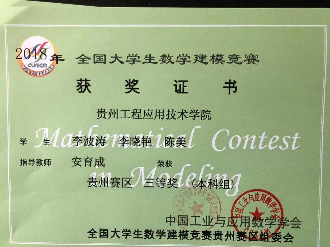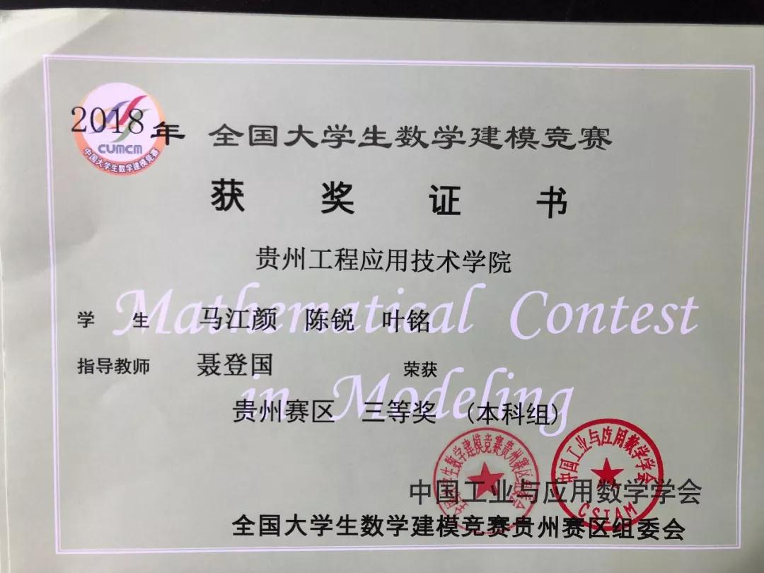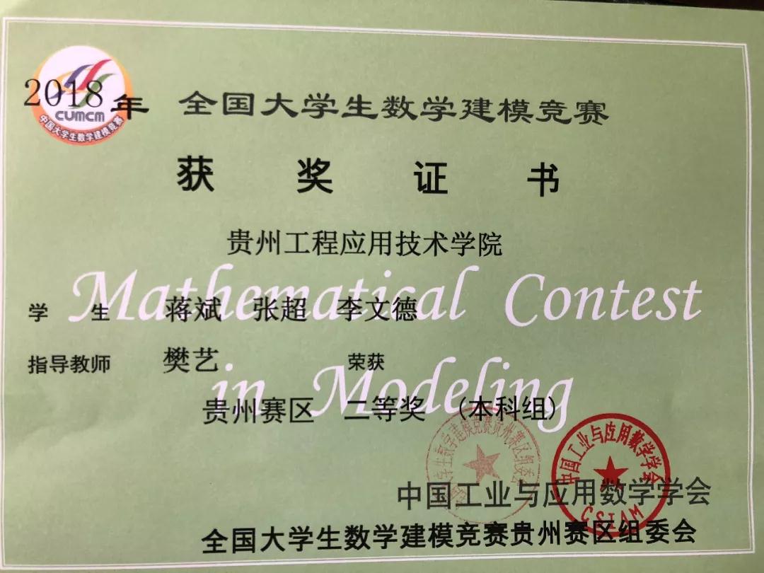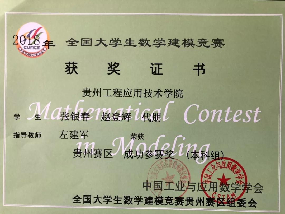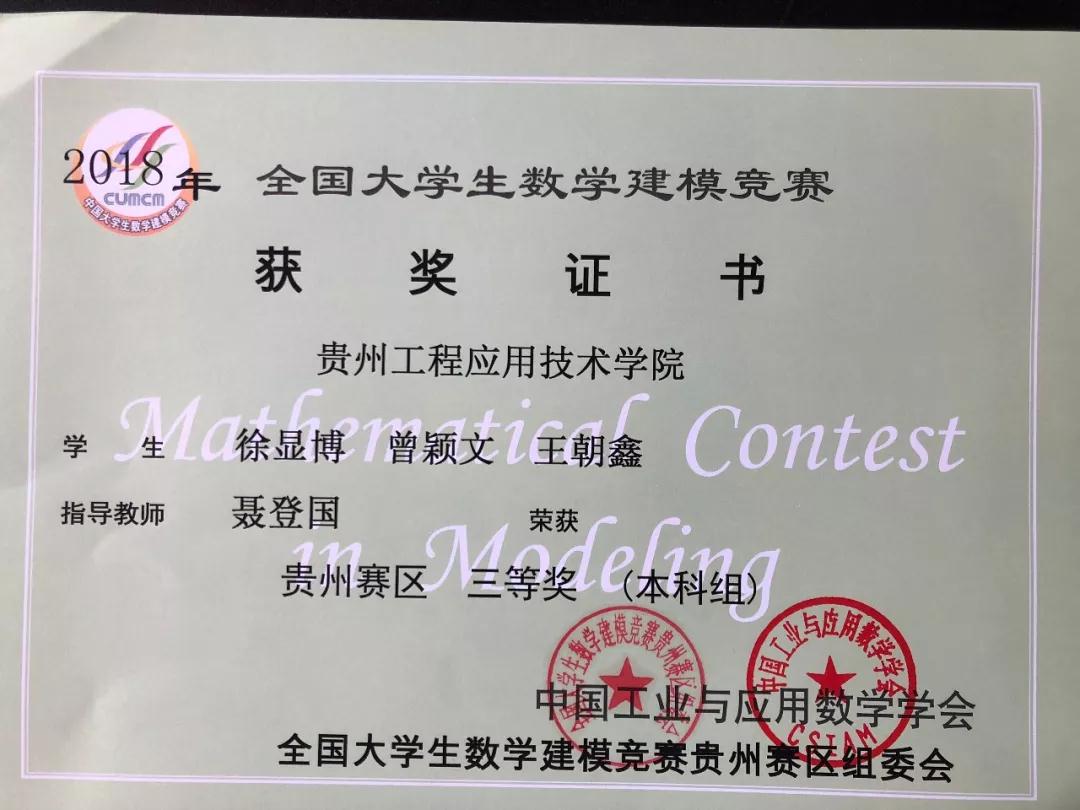 光荣榜|我院2018年全国大学生数学建模大赛获奖者名单(附证书)