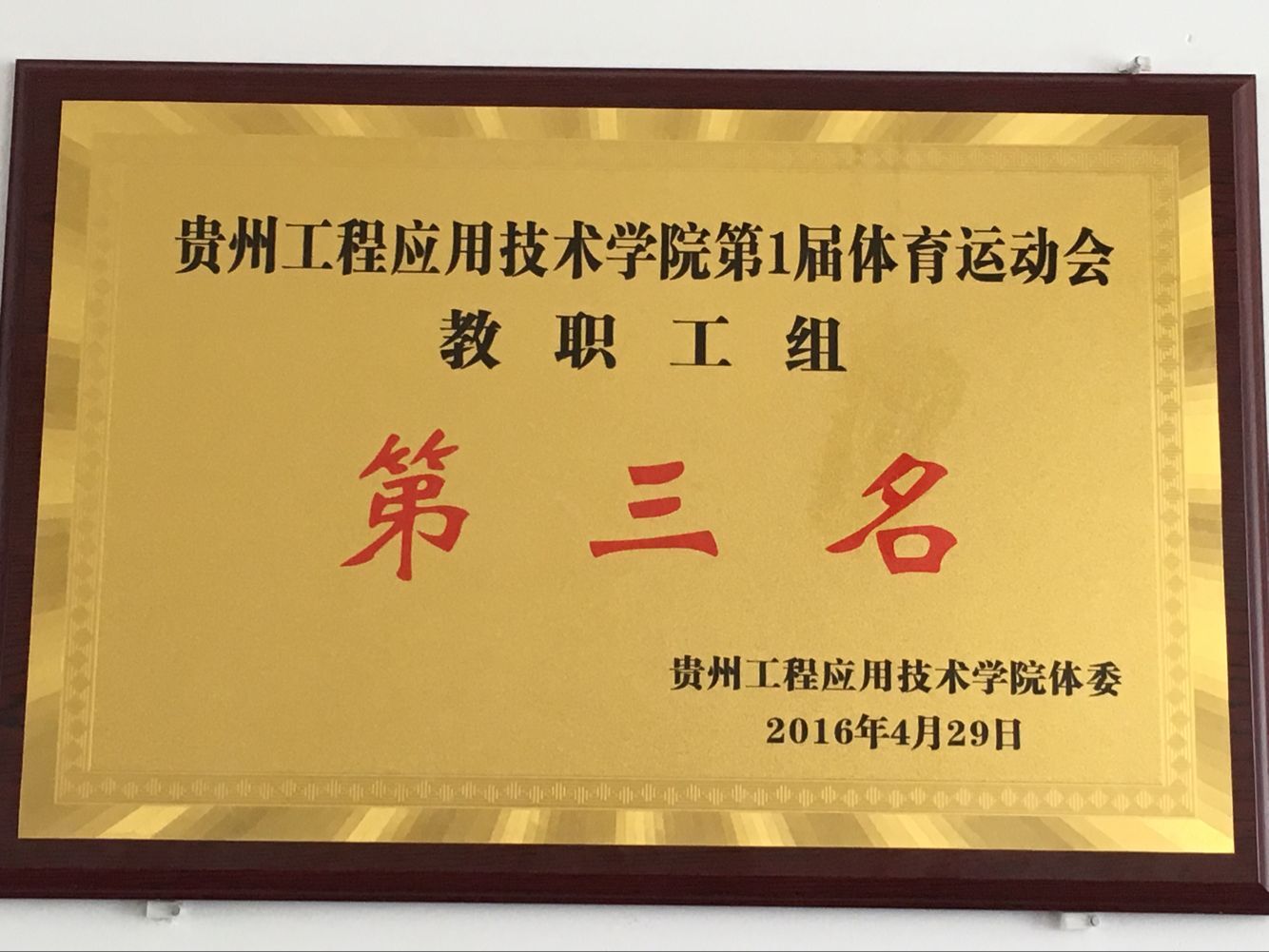 4 月27日 -29日,贵州工程应用技术学院第一届体育运动会在校运动场隆重举行。本次运动会共进行13个大项比赛项目,理学院教师在运动场上拼搏进取、团结一心、赛出水平,赛出风格,最终取得了教职工组团体第三名的好成绩。