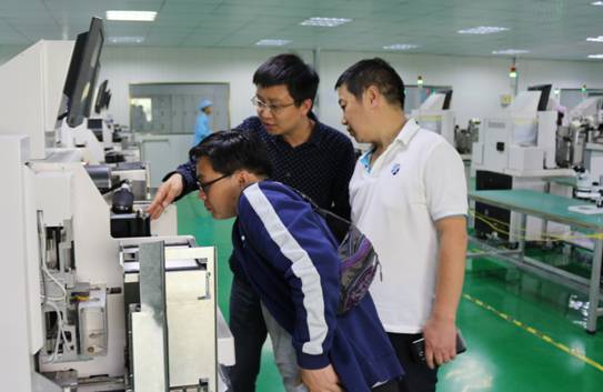 为提高理学院电子信息类工科学生的培养质量,2016年6月10日下午,理学院院长王朴、副院长高慧昀、实验中心主任李佐、电子技术系系主任王建卫一行赴贵州炬晟半导体有限公司和贵州联尚科技有限公司参观考察。在参观考察过程中与炬晟半导体有限公司董事长王炉和联尚科技有限公司总经理戴遥霄商讨了校企合作相关事宜,对学生企业见习、就业、电子类专业培养方案的制定和下一步理学院与企业的产教融合等问题进行了深入交流。