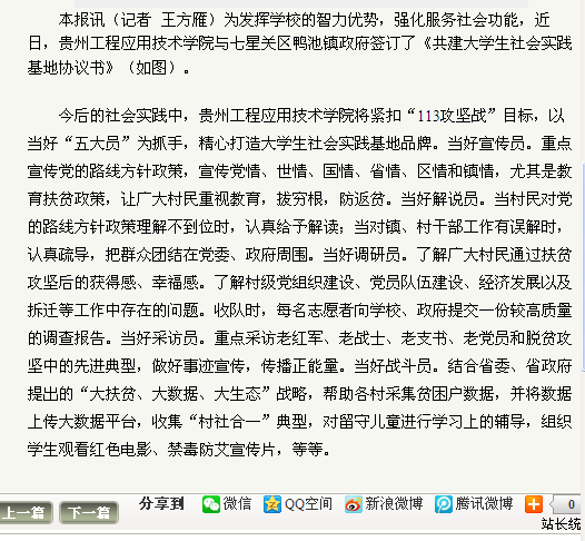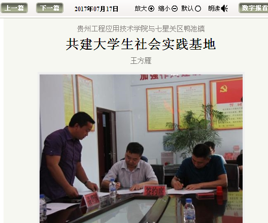 《毕节日报》:贵州工程应用技术学院与七星关区鸭池镇共建大学生社会实践基地