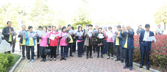 活动上,杨保华、卢凤鹏代表学校接受七八级数学班校友捐赠的雪松树、“松石韵”景观石、“集句诗”书法长卷,并与校友们一同为雪松树培土,为景观石揭幕。七八级数学班校友饱含深情地合唱了《校歌1939》、《老师,我想你》的歌曲。杨保华给校友颁发捐赠证书和收藏证书。