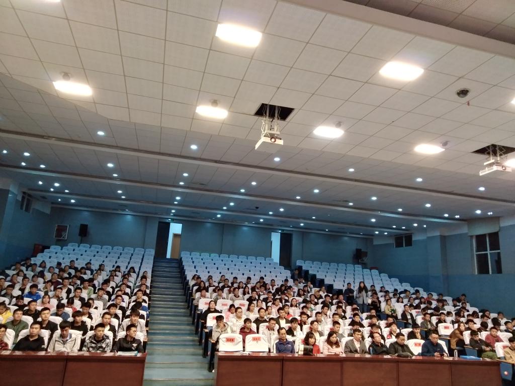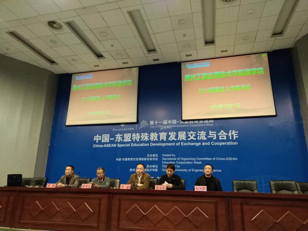 为了更好的让2018级新生尽快适应大学生活,树立明确的奋斗目标,2018年10月11日晚7时30分,贵州工程应用技术学院理学院在身修讲堂召开主题为“珍惜大学时光,不负青春年华,争做堪当民族复兴大任的新青年”的2018级新生入学教育会。学院党总支书记王兴、院长聂祥荣、副书记熊斌、副院长刘竹影、理学院关工委常务副主任廖湘全、科级干部、辅导员、2018级班主任、2018级全体新生参加了会议。会议由理学院党总支书记王兴主持。会上,廖湘全老师、聂祥荣院长、王兴书记分别对新生进行了寄语。