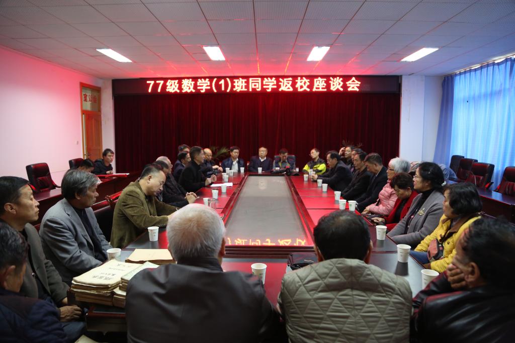 2018年10月20日,77级数学(1)班校友怀着对母校的眷恋,对恩师的尊崇,对同学的深情友谊,从四面八方聚集到离别40年的母校,参观校史馆,追忆学校改革发展历程。