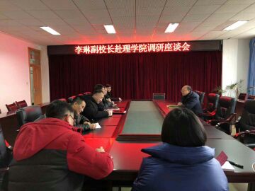 2018年12月25日下午,李琳副校长深入理学院调研指导,听取院长聂祥荣汇报师资队伍、课程建设、学科建设、学生创新与就业等工作,与全体参会人员亲切交流,围绕人才培养方案的修订,专业与企业行业的对接,学科方向的凝练,专业建设,平台建设,科研项目的申报,提升内部管理水平,服务好师生,激发活力等方面给以精心指导。