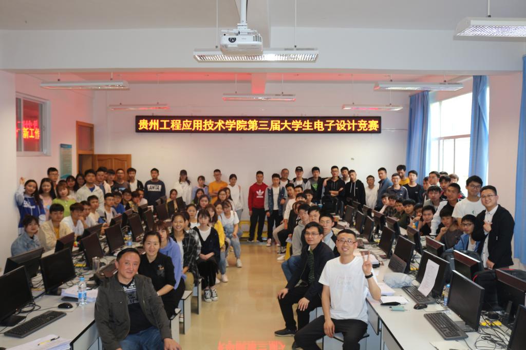 2019年5月26日在理学院单片机实验室308,成功举办了“贵州工程应用技术学院第三届大学生电子设计竞赛”。大学生电子设计竞赛目的在于按照紧密结合教学实际,着重基础、注重前沿的原则,促进电子信息类专业和课程的建设,加强学生动手能力的培养和工程实践的训练,提高学生针对实际问题进行电子设计、制作的综合能力。通过本次竞赛,选拔优秀参赛队参加2019年全国大学生电子设计竞赛。