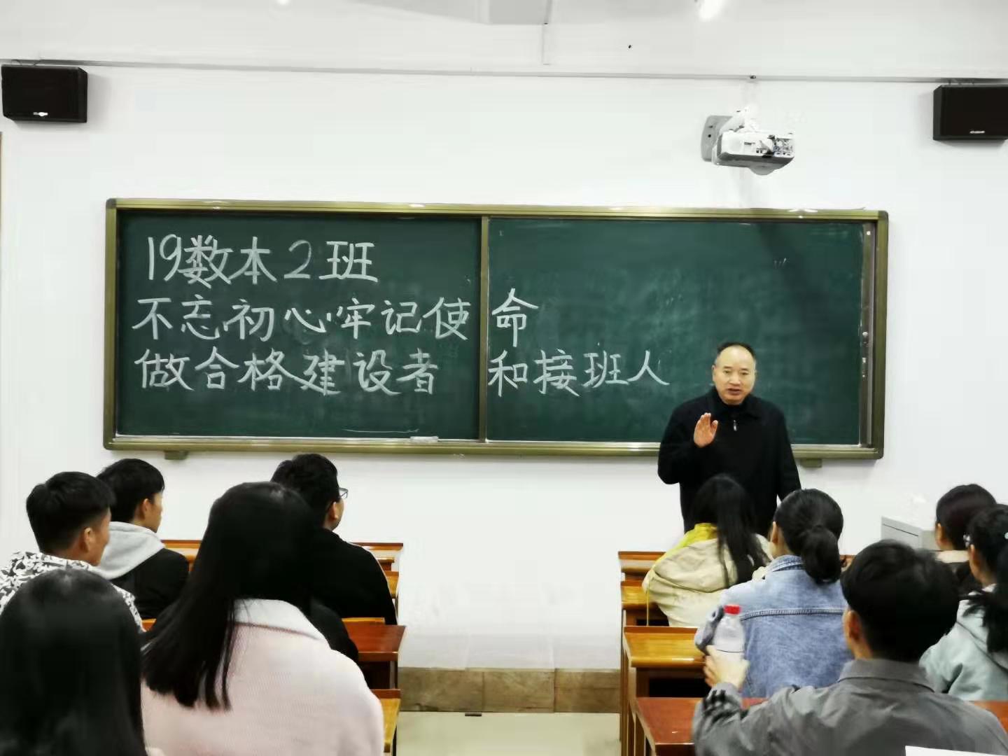 2019年11月4日晚上19:00—20:40,理学院党总支书记王兴以“守初心担使命,做合格建设者和堪当民族复兴大任接班人”为主题,与2019级数学与应用数学2班全体同学在绣山B栋202教室座谈交流。
