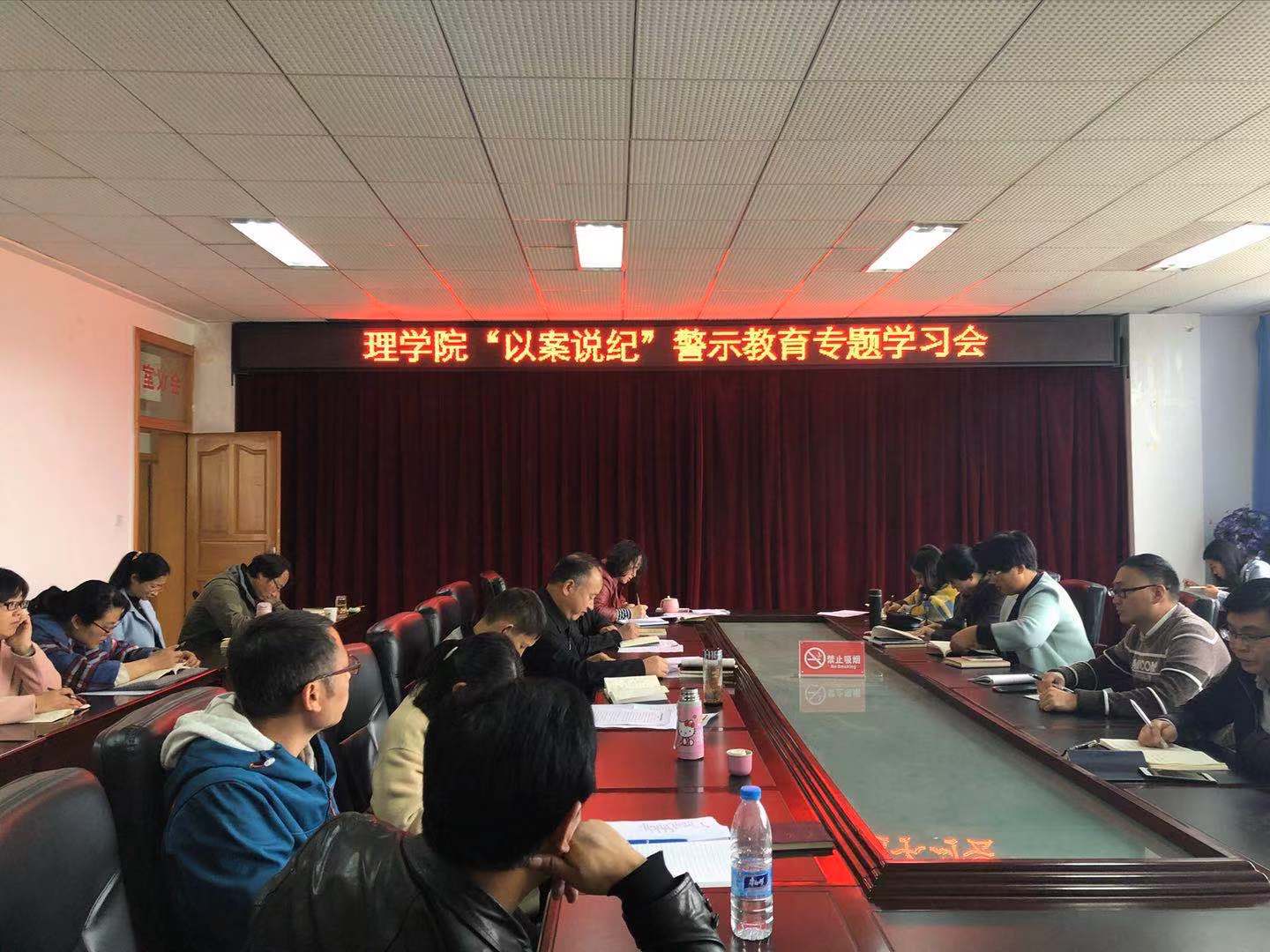 2019年11月4日下午15:40—16:30,理学院以“牢固树立纪律和规矩意识,做清政廉洁的表率”为主题,在本院会议室组织全体党员、干部、教职工召开“以案说纪”警示教育专题学习会。会议由党总支书记王兴主持。