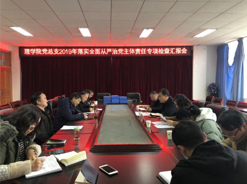 2019年12月19日下午15:30—17:00,理学院在本院会议室召开党总支2019年度落实全面从严治党主体责任专项检查汇报会。出席会议的人员有学校第四检查组成员,本院科级以上干部、总支委员、教工党支部书记、学生党支部书记、教师党员代表。汇报会由党总支书记王兴主持。