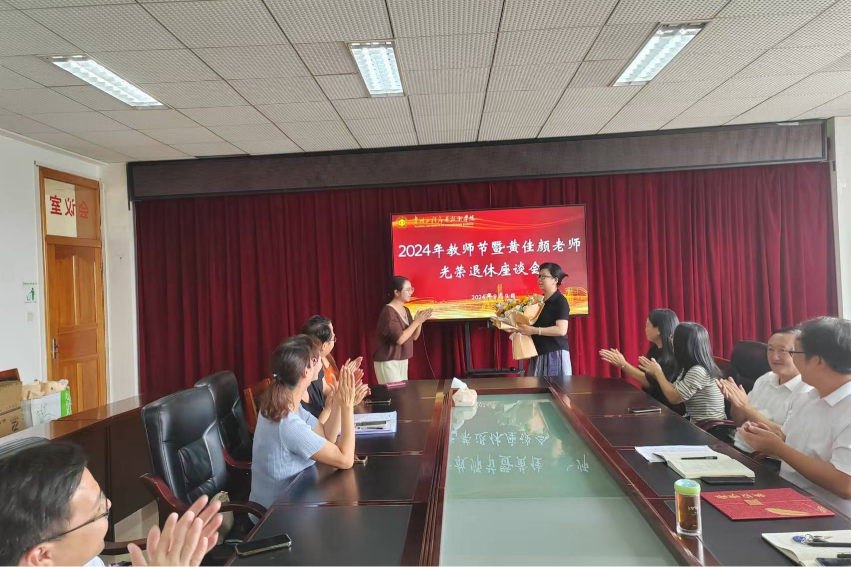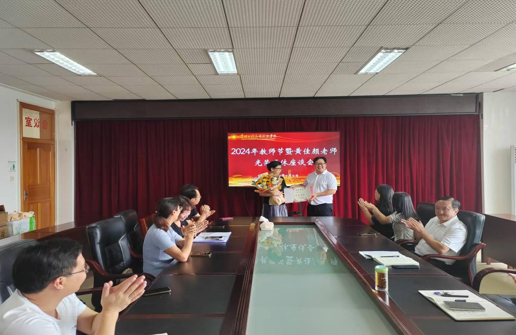 9月9日下午,在第40个教师节来临之际,理学院召开2024年教师节暨黄佳颜老师光荣退休座谈会,会议在理学院会议室举行。理学院党政班子成员及各科室负责人、各专业负责人、部分教师代表参加座谈。会议由理学院党总支书记叶力军主持。