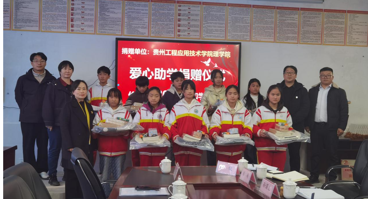 2025年11月21日,理学院党总支书记叶力军带队赴对坡中学开展了““微光汇聚 以爱为壤””行动,为对坡中学10名品学兼优、家庭贫困的优秀学生送去了书包、笔、本子等学习用品,为学校捐赠了一批体育用品。同时与对坡中学签署了“大学生社会实践基地合作协议”。
