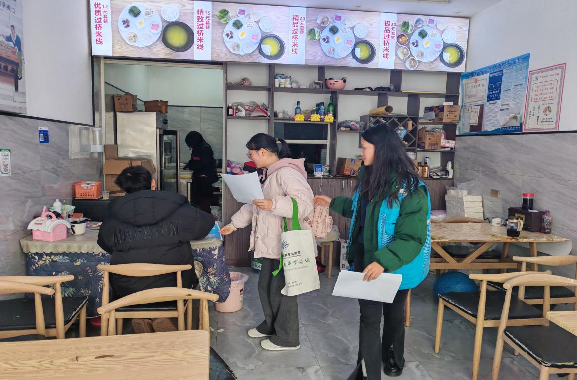 为弘扬勤俭节约的传统美德,倡导文明健康的生活方式,2025年4月7日,贵州工程应用技术学院马克思主义学院2022级思想政治教育本团支部联合德溪街道团工委共同组织开展了“践行文明就餐礼仪,共筑文明新风尚”主题宣传活动。来自马克思主义学院的11名团员深入社区餐饮场所,通过多元形式传播文明就餐理念,以实际行动助力七星关区精神文明建设。