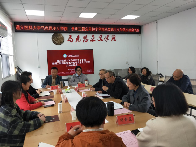 邢瑞娟首先充分肯定我院在课程及专业建设方面采取的举措及取得的成效。其次,她介绍了遵义医科大学马克思主义学院的发展历史与建设现状,主要围绕思政课教学、学科建设、学位点建设、科学研究、师资队伍建设、教学改革、论文发表情况等方面工作展开分享,并重点介绍了该院在全省重点马院申报与建设方面的经验与做法。副院长沈洋从师资队伍建设、科学研究、人才培养、对外交流与合作等方面进一步分享了如何对标对表做好学科建设和硕士点申报工作。