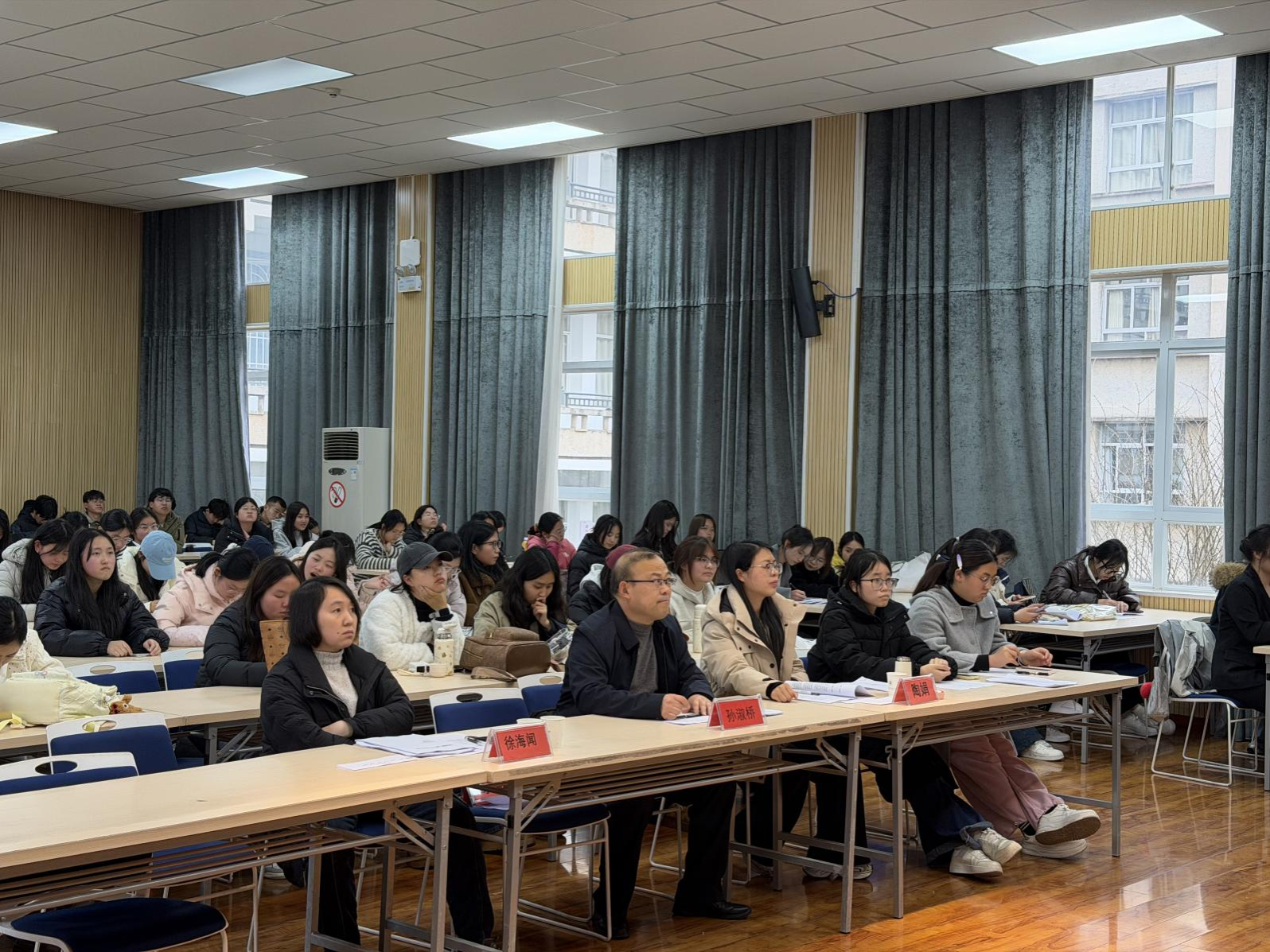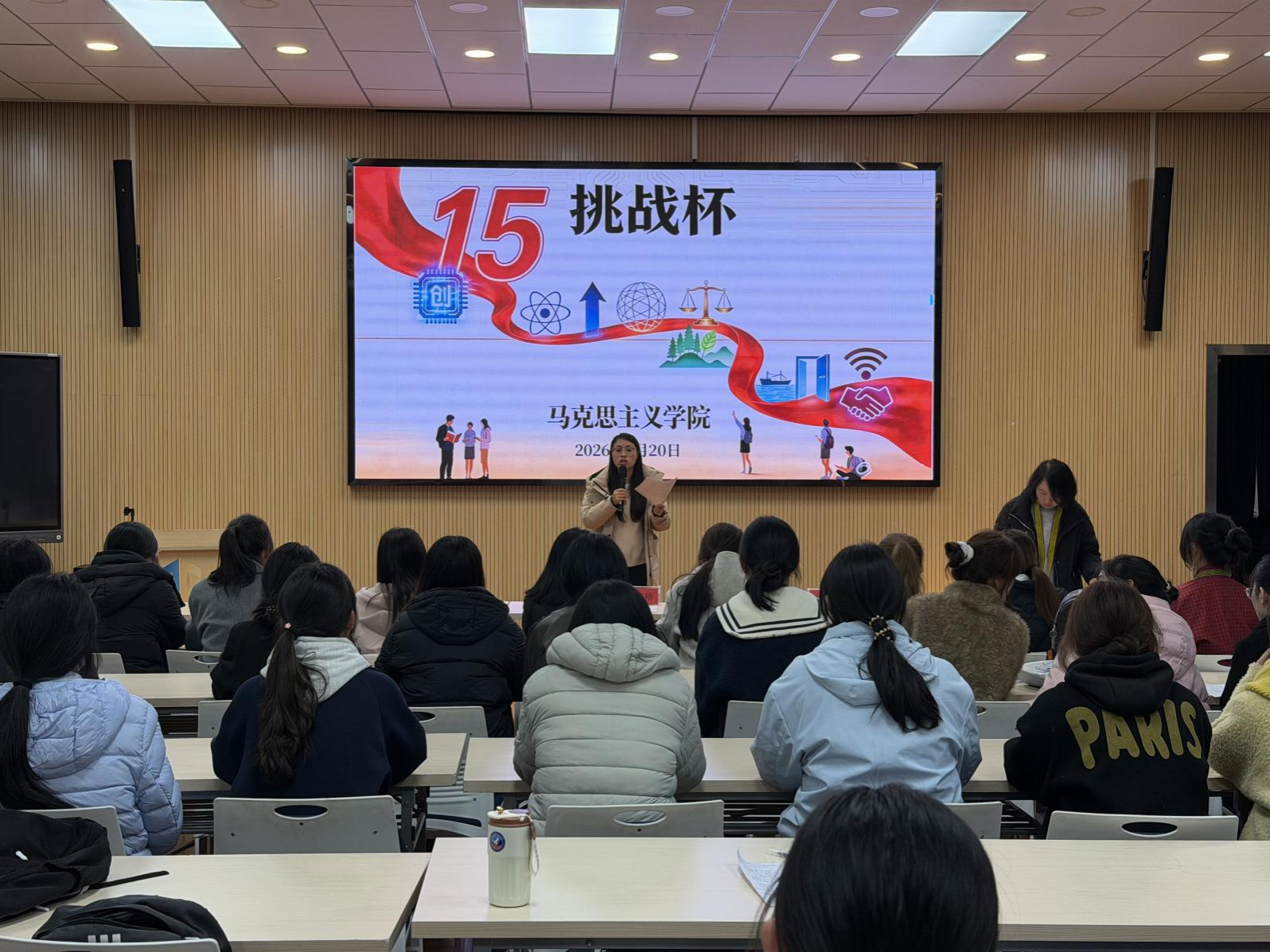 2026年3月20日,第十五届“挑战杯”中国大学生创业计划作品竞赛选拔赛(决赛)在仲群楼二楼会议室举行。马克思主义学院副院长孙淑桥、团总支(学生科)副科长徐海闻,团总支负责人陶娟担任评委,各参赛团队及学生代表参加活动。