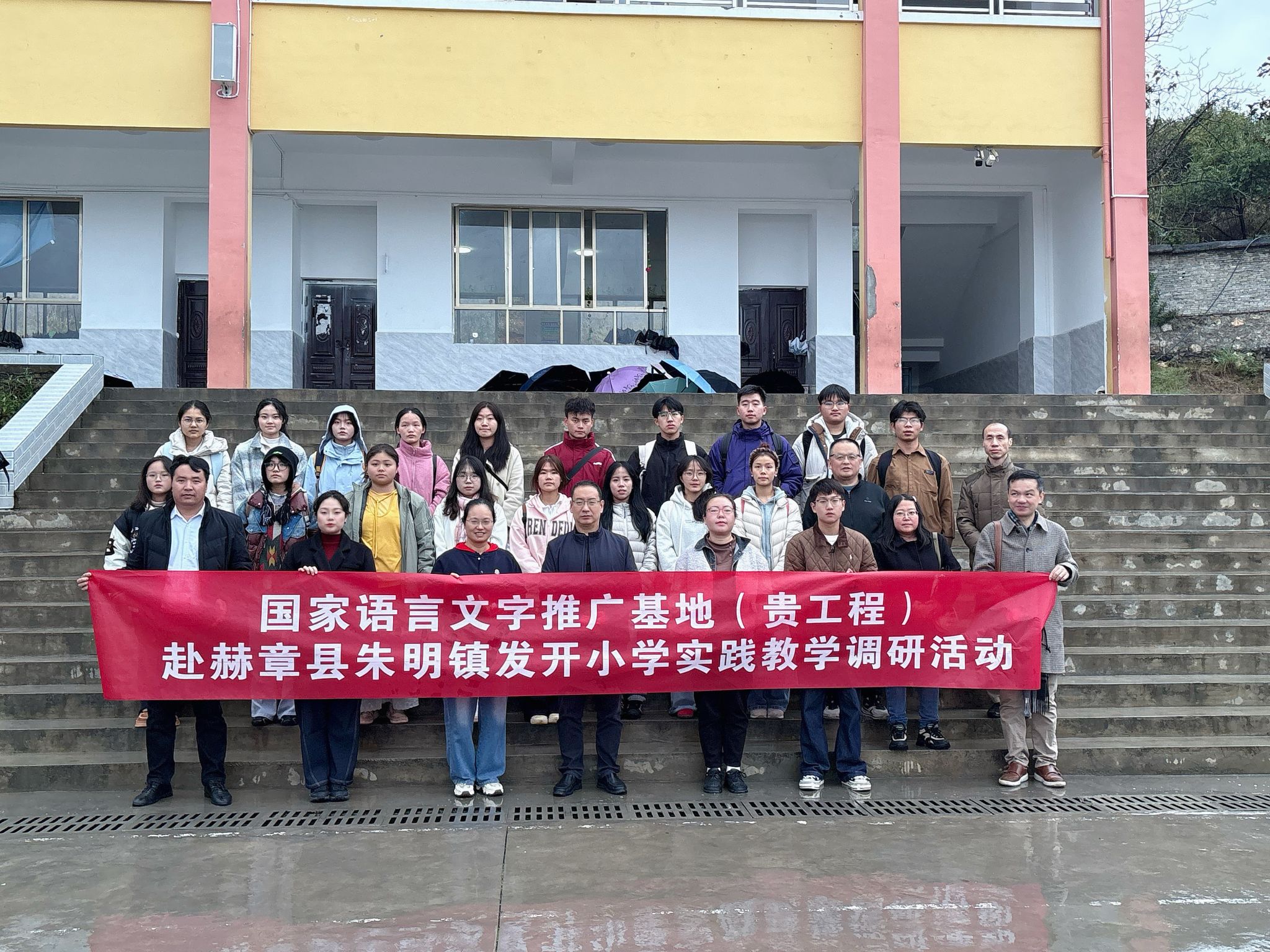 为深入推广国家通用语言文字,积极服务乡村振兴战略,进一步铸牢中华民族共同体意识,2025年10月31日,贵州工程应用技术学院人文学院师生赴贵州省赫章县朱明镇中心小学,开展“推普助力乡村振兴”主题实践教学。活动充分发挥高校智力资源优势,赋能乡村教育发展,引导青年学生在基层实践中锤炼本领、担当使命。