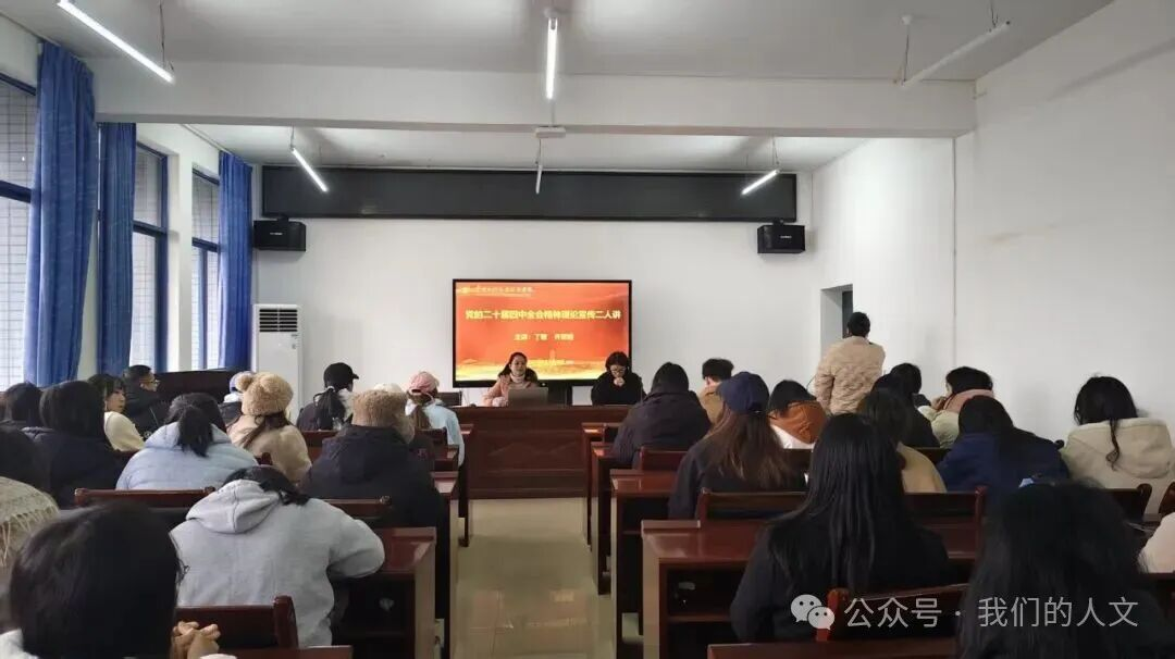党总支宣传委员齐雪晴老师和团总支负责人丁敏老师以《接续奋斗,确保基本实现社会主义现代化取得决定性进展》为题,对全会精神进行了深入解读。她们系统阐述了全会的重大意义,强调了“十五五”时期在基本实现社会主义现代化进程中的关键地位,号召广大青年学子深刻领会全会精神,保持战略定力,增强必胜信心,将个人成长融入国家发展大局。