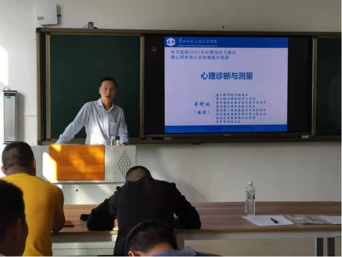 根据贵州省毕节监狱的计划安排和要求,2021年9月28日至30日,我院为贵州省毕节监狱开展2021年民警岗位大练兵暨心理咨询师技能提升培训,参加这次培训的民警有20人,培训开设《心理咨询的理论与实践》《心理诊断与测量》《心理危机干预》三个专题讲座,由师范学院院长李舒波教授、实验室主任张建勇副教授、小学教育系主任张静副教授三位老师承担培训讲座任务。这是我校与毕节监狱进行智力帮扶和我院与毕节监狱进行合作共建的重要内容。