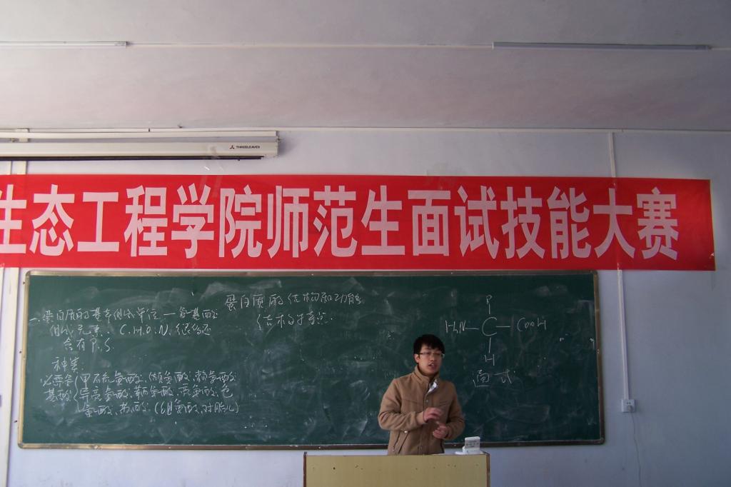 我院于2015年11月28日至11月29日,在贵州工程应用技术学院仲群楼三楼,成功举办了生态工程学院第一届师范生面试技能竞赛预赛。参与此次竞赛的老师共计20名,学生87名。面试过程中学生都以积极的态度认真对待每一个环节,学生的表现都得到了评委老师的一致好评。比赛结束之后学生都觉得自己在此次竞赛中受益匪浅,得到了很好的锻炼,为以后的工作面试打下了坚定的基础,使自己能够成功转型为一名优秀的教师,为国家的教育事业贡献自己的力量。(竞赛成绩排名请查看附件1、2)
