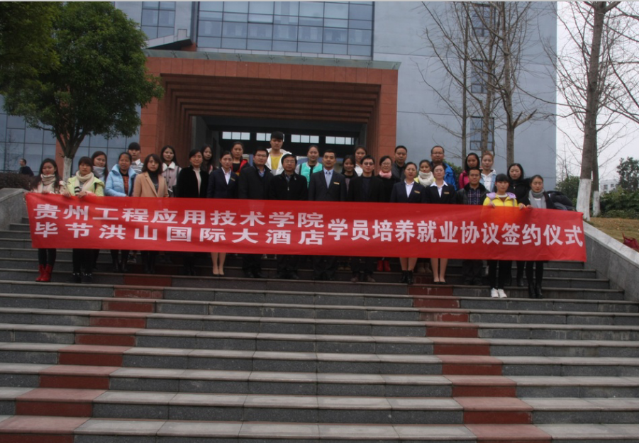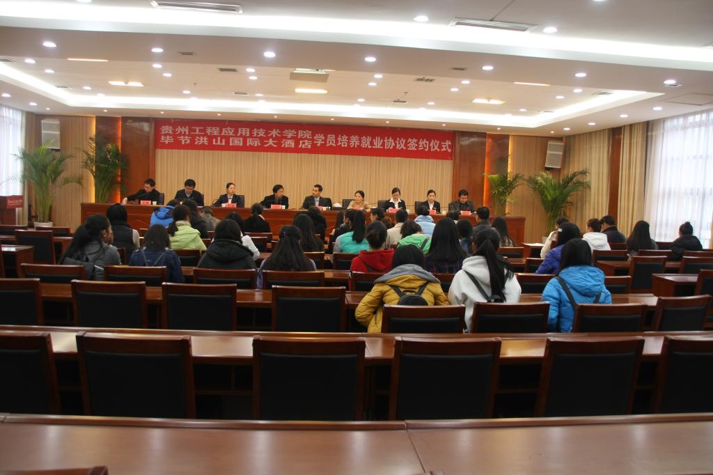 12月7日上午,贵州工程应用技术学院与毕节洪山国际大酒店有限公司学员培养就业签约仪式在西区综合楼1202室举行。毕节洪山国际大酒店总经理刘同兵、办公室主任周天珍、人力资源部总监白英、人力资源部副经理黄晶,我校教务处彭双艳副处长、对外交流处副处长李文斌、法规处副处长张煜、生态工程学院书记胥献宇、生态工程学院院长冯图及相关师生参加了签约仪式。会议由冯图院长主持。