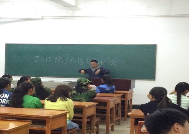 2015年9月8号19:30,我院2015级地信班班主任丁卫红老师召集全班同学在绣山实验楼C栋教师技能训练室开展本学期第一次班会活动。