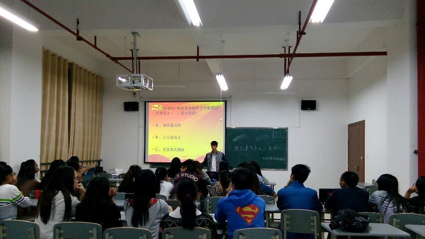 为深入学习宣传贯彻党的奉献精神,我院团总支按校团委决定开展“我是共产主义接班人”的党团知识竞赛于10月23日晚在西区综合楼206教室举行。活动由团总支学生副书记彭远义主持,由我学院每个班分别选出5的名同学参赛。