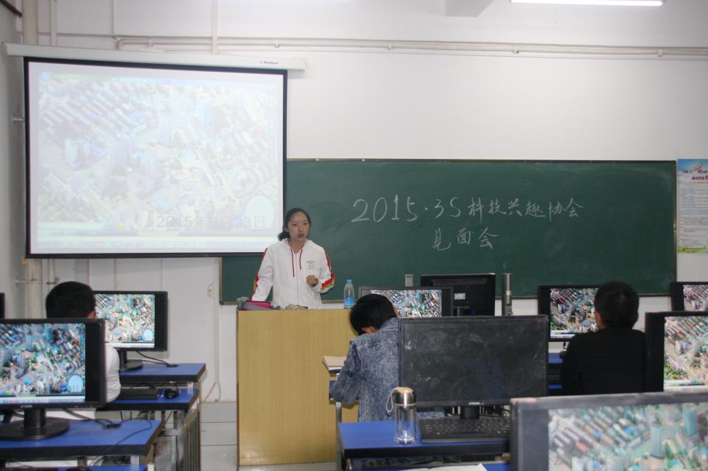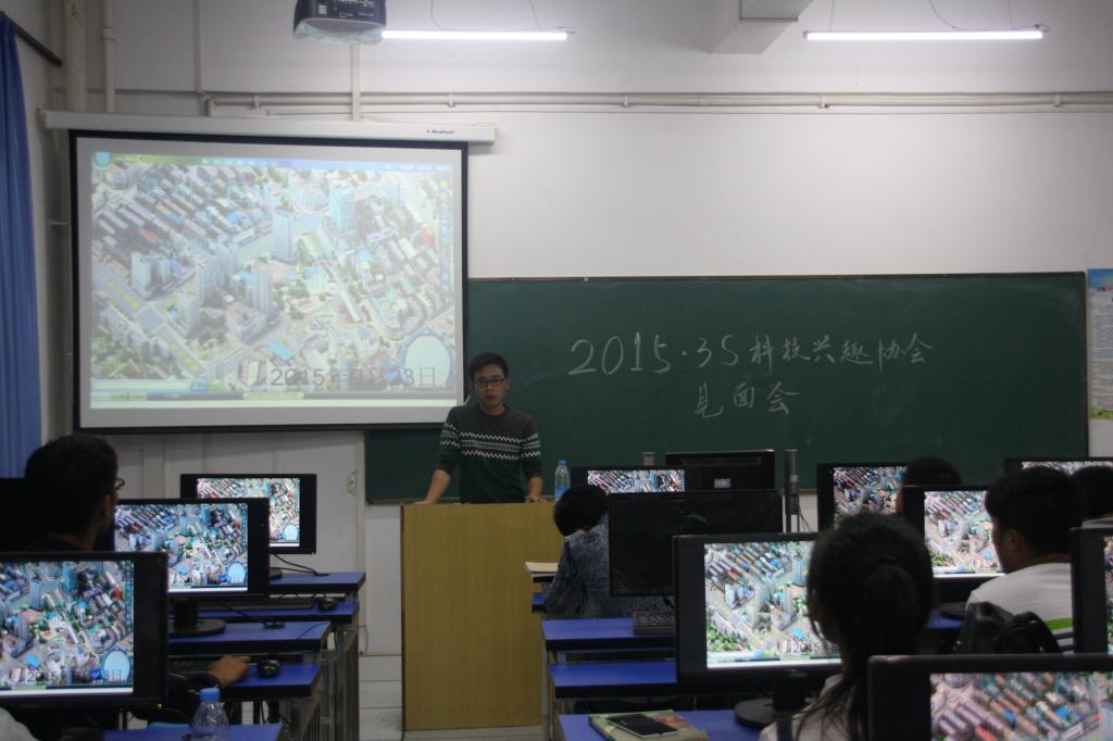 2015年9月23日晚上7点30分,3S科技兴趣协会在我院GIS实验室召开2015年度新成员见面交流会。院团总支副书记陈爱华老师,会长陈驰,主要负责人:马勋丛、梁朝亮、黄娇、刘刚、陈兴达、秦洋,张胤及2015及3S全体成员参与会议。会议由陈驰主持,张胤记录。