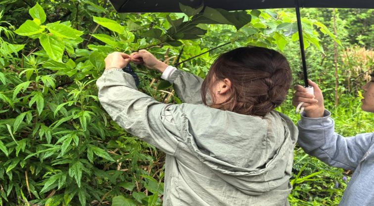 活动分为三个阶段。首先,在2025年5月19日,学生们在陈坤浩教授的指导下,对生态小院的乔木树种进行了详尽的调查。在活动现场,陈坤浩教授担任“树木讲解员”,深入浅出地分析了植物的学名、科属、形态特征以及园林用途,同学们则聚精会神地记录下这些宝贵的信息。接下来,在2025年5月20日至22日,学生们着手整理调查资料,指导老师则负责审核这些资料,并指导学生制作树牌。最后,在2025年5月23日,学生们在陈坤浩教授的再次指导下,将制作好的树牌挂在了相应的树木上。这些蓝底白字的树牌,宛如树梢间飘动的“自然说明书”,为校园增添了一道亮丽的风景线。