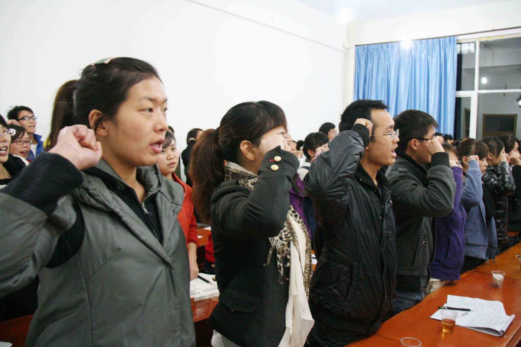 会议在雄壮的国歌声中来开帷幕,与会人员观看学习了十七届七中全会相关视频,学生党员代表交流了学习心得,党总支书记胥献宇进一步解读了视频学习内容并进行了小结。接着,在领誓人胥献宇的带领下,全体老党员和预备党员笔直站立,高举右手,庄严地面向党旗进行进行了宣誓。会议最后,胥献宇总结道:全院师生党员要团结带领全院师生解放思想,坚持改革开放,推动科学发展,促进社会和谐,积极参与文明和谐校园建设,以优异成绩迎接党的“十八”大的召开。