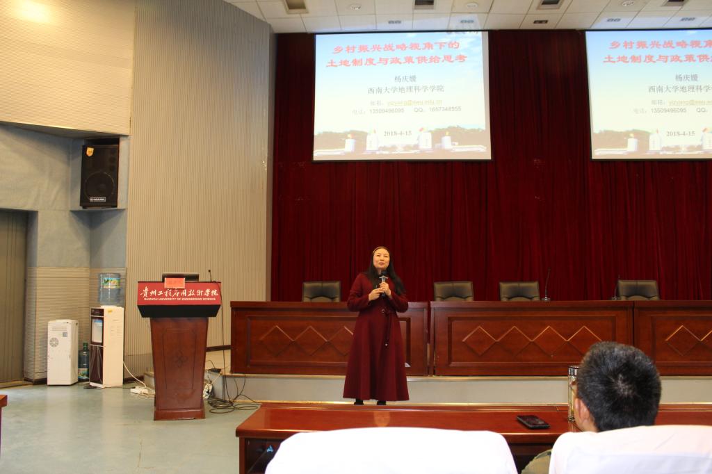 杨庆媛院长围绕土地制度为什么要振兴、如何振兴、等问题开展了题为“乡村振兴战略视角下的土地制度与政策供给思考的精彩讲座;杨光进校长的讲座题为“新时代中学地理教学的思考”,主要讲解了地理学科教育在中学的现状,中学地理学科课程理念的变化,地理学业质量评价合理性,地理学科的高考变革等方面的内容;张凤太教授的讲座则主要聚焦于岩溶山区水资源安全问题。