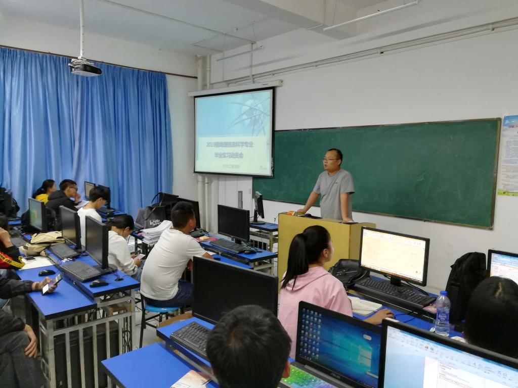 根据地理信息科学本科专业培养方案和教学计划安排,我院2015级地理信息科学专业将于第七学期进行毕业实习。为确保地理信息科学专业毕业实习质量,进一步规范学生实习工作,提高学生职业技能与素质,我院于2018年5月31日在GIS实验室召开“召开2015级地理信息科学专业毕业实习动员会”。