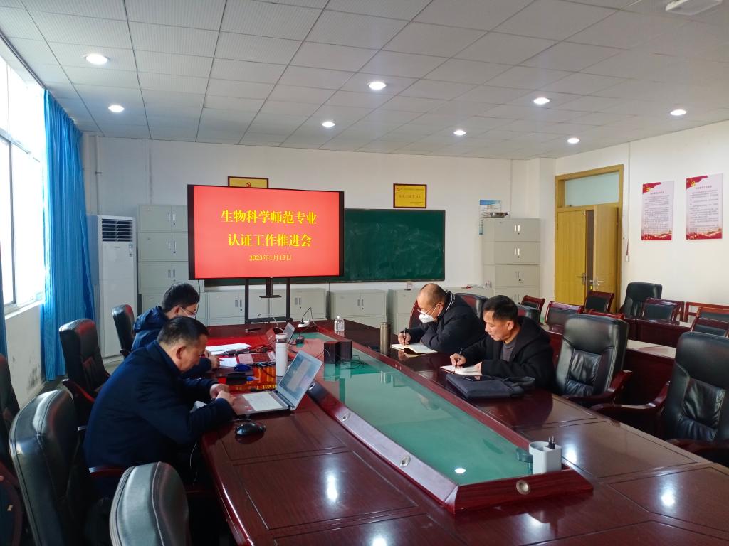 2023年1月13日,我院召开生物科学师范专业认证工作推进会,受疫情影响,会议以现场及网络会议形式召开,学院领导班子成员及专业负责人在学院会议室参会,其余教师以网络会议形式参会。