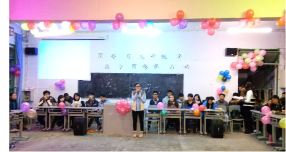 活动中最引人入胜的是游戏环节:第一个游戏是接鼓传花,由主持人宣布规则后,在场的所有人都进入紧张状态,因为我们的游戏是有奖有罚的,这个游戏带动了大家激情,使现场的气氛十分活跃。第二个游戏是保护气球,同样有主持人宣布规则后,同学自愿来玩游戏,游戏中看到同学们为保护气球奋不顾身,看到同学们的朝气磅礴。第三个游戏是你猜我猜,这个游戏规则是由同学自我介绍,然后由主持人检验同学们记住多少同学,这个游戏为我们提供了一个认识彼此的机会,扩展了同学们的人际关系。我们所有参加游戏的同学都得到一份小礼物,让同学们对此次晚会留下了深刻的影响。