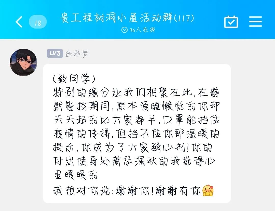 疫情无情,人间有爱,因为有你,才不害怕。城市静默了,陪伴却响彻云霄!真诚陪伴,从来不惧距离远近,战疫下大家都是爱的表达者,树洞小屋开放第二天团团就收到很多“感谢”,接下来,让我们一起去看一看听一听他们的感动瞬间吧!