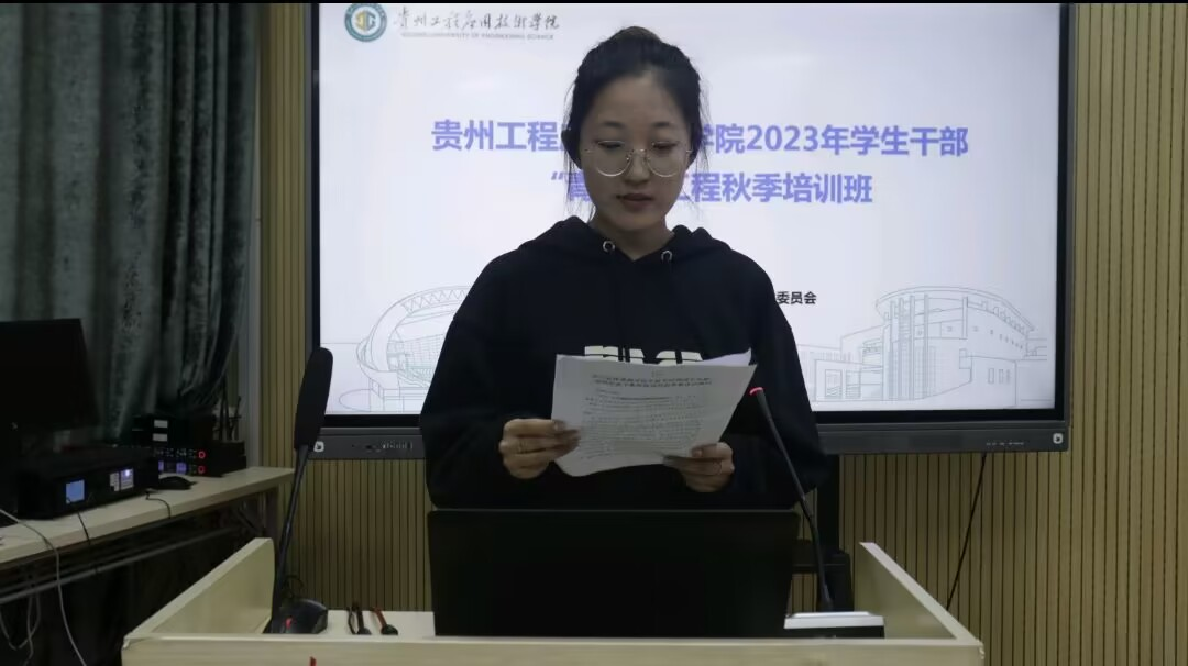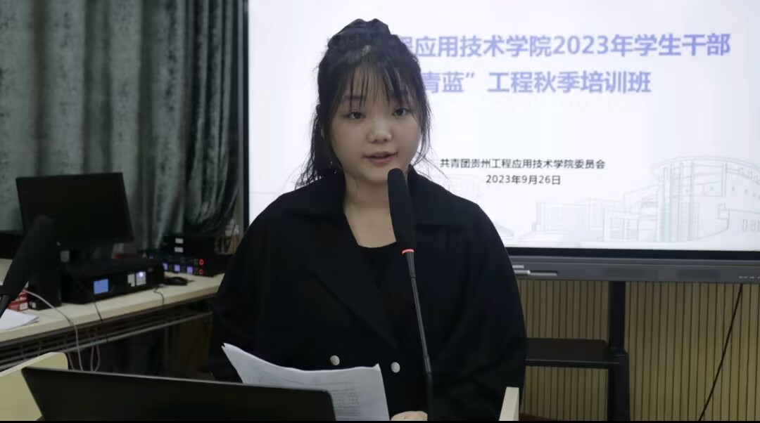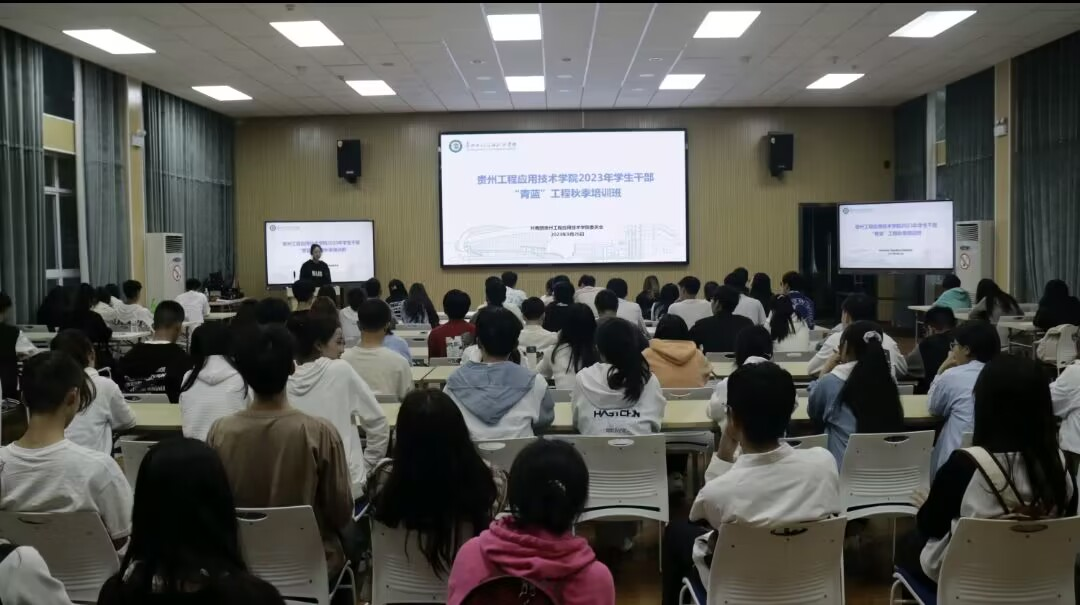 9月26日,贵州工程应用技术学院2023年学生干部“青蓝”工程秋季培训班在新时代青年讲习所如期举行。校院两级学生会、志愿服务联盟、社团服务中心学生干部共100余名参加培训会。